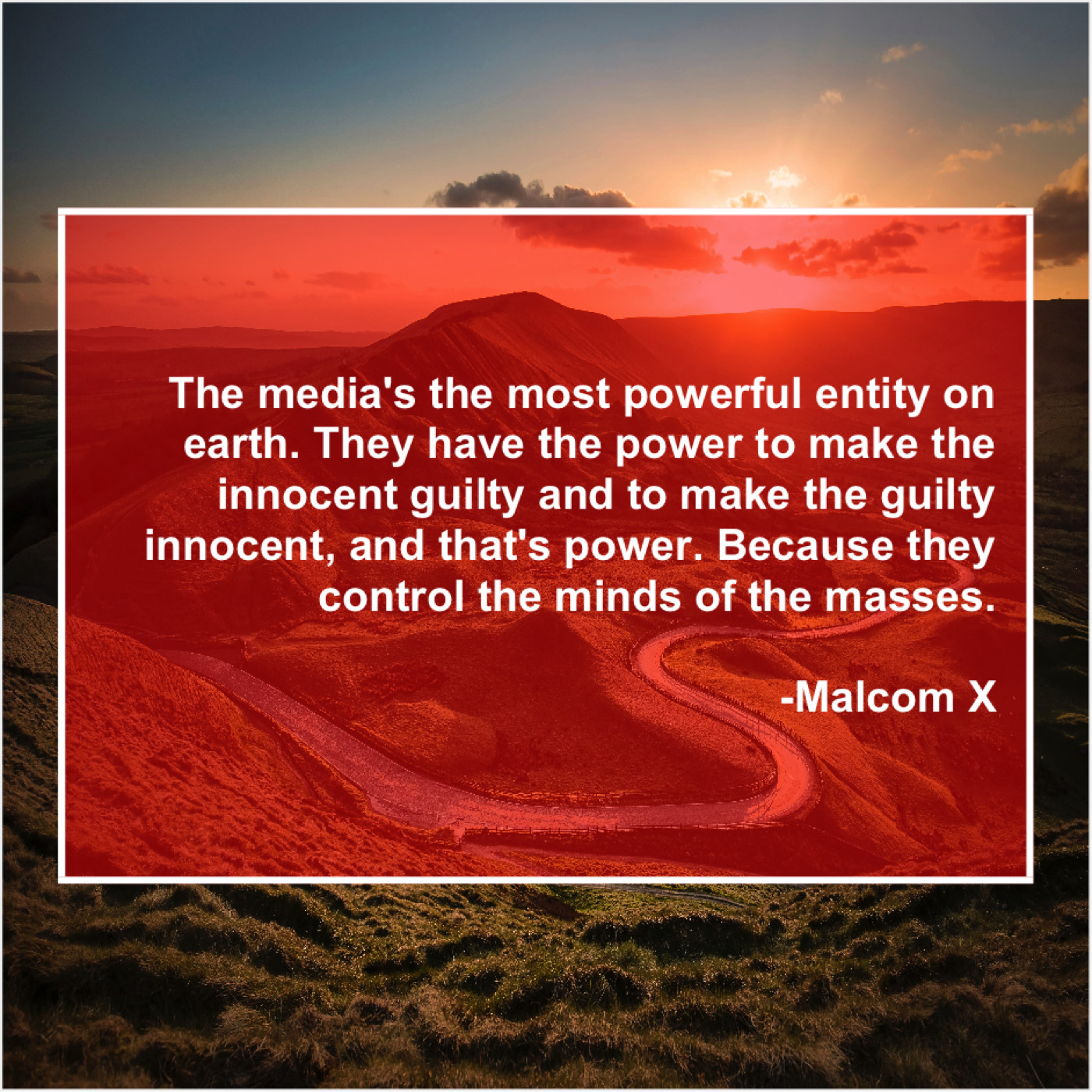 Malcom X Malcom X – The media’s the most powerful… December 11, 2018 admin “The media’s the most powerful entity on earth. They have the power to make the innocent guilty and to make the guilty innocent, and that’s power. Because they control the minds of the masses.”-Malcom X