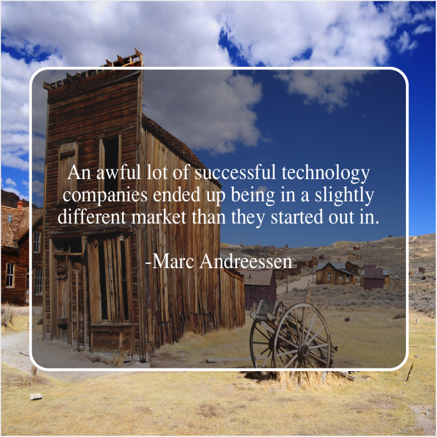Marc Andreessen Marc Andreessen – An awful lot of successful… December 18, 2018 admin “An awful lot of successful technology companies ended up being in a slightly different market than they started out in.”-Marc Andreessen