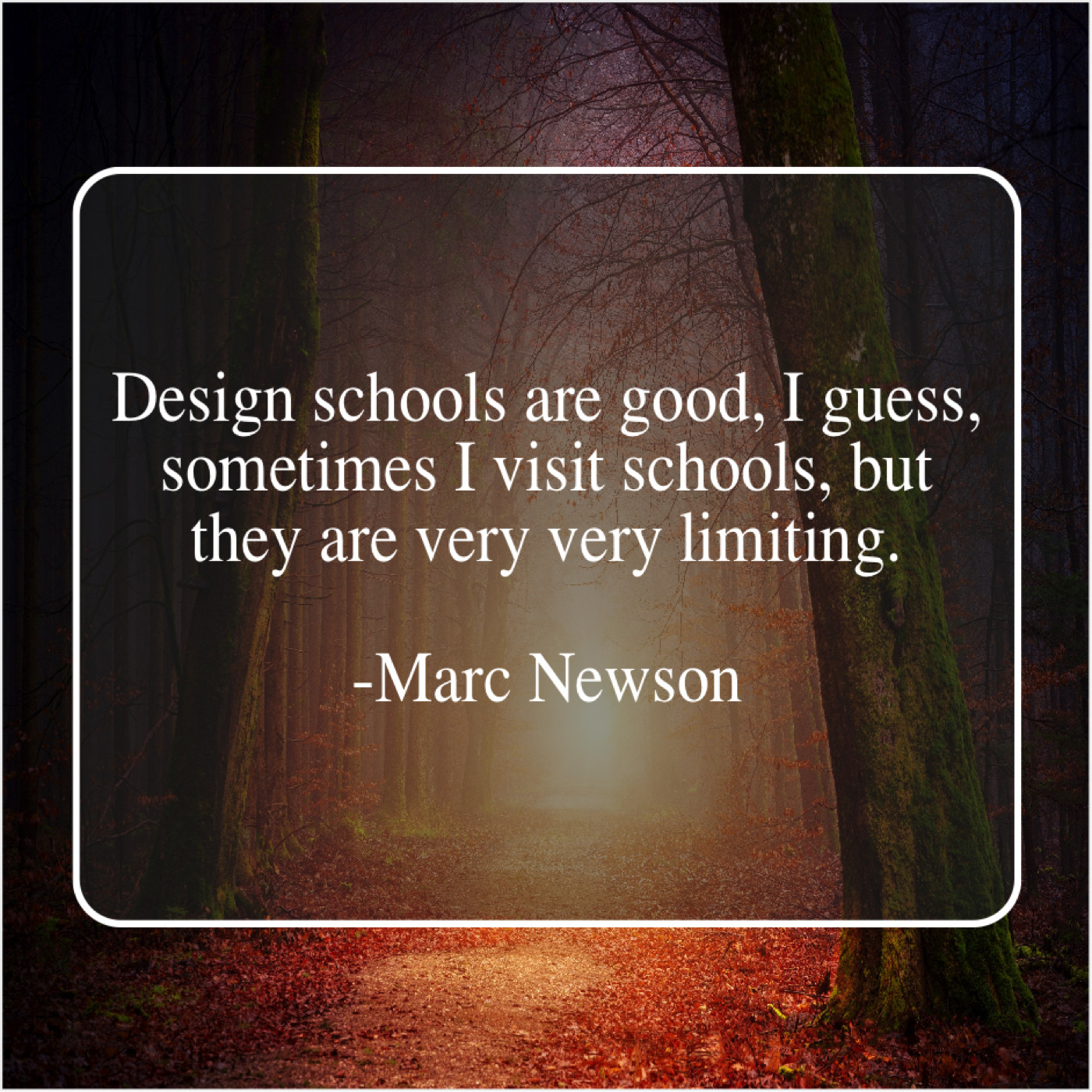 Marc Newson Marc Newson – Design schools are good, I… June 29, 2019 admin “Design schools are good, I guess, sometimes I visit schools, but they are very very limiting.”-Marc Newson