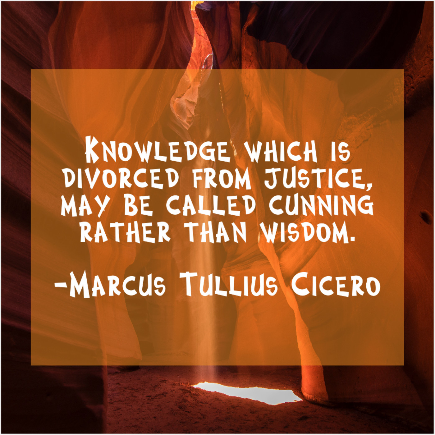 Marcus Tullius Cicero Marcus Tullius Cicero – Knowledge which is divorced from… September 13, 2019 admin “Knowledge which is divorced from justice, may be called cunning rather than wisdom.”-Marcus Tullius Cicero