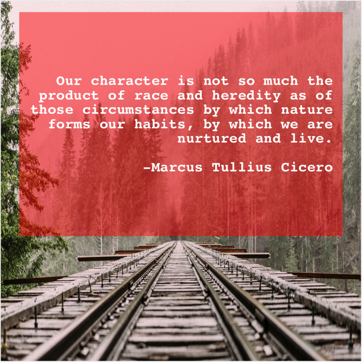 Marcus Tullius Cicero Marcus Tullius Cicero – Our character is not so… May 6, 2019 admin “Our character is not so much the product of race and heredity as of those circumstances by which nature forms our habits, by which we are nurtured and live.”-Marcus Tullius Cicero
