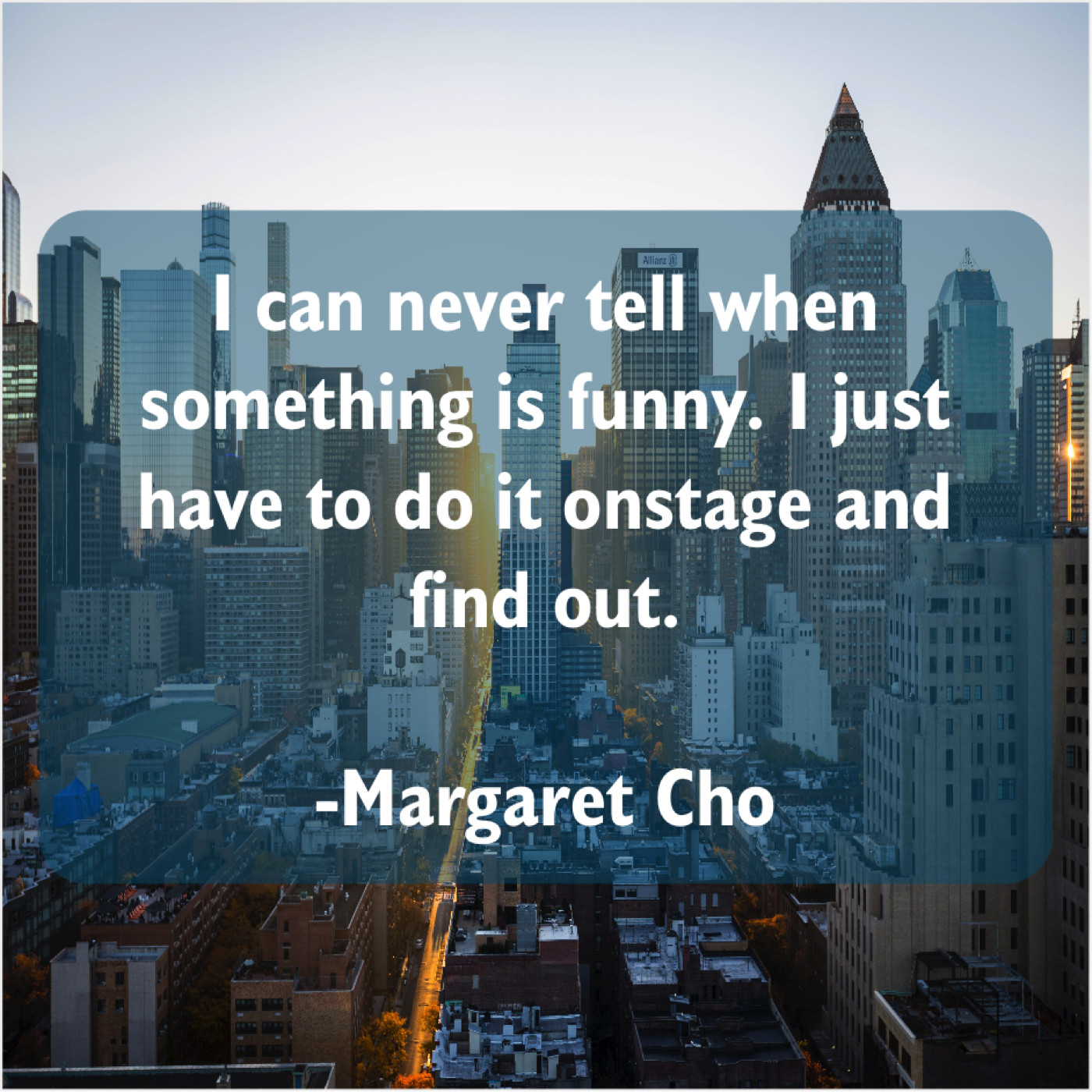 Margaret Cho Margaret Cho – I can never tell when… May 24, 2019 admin “I can never tell when something is funny. I just have to do it onstage and find out.”-Margaret Cho