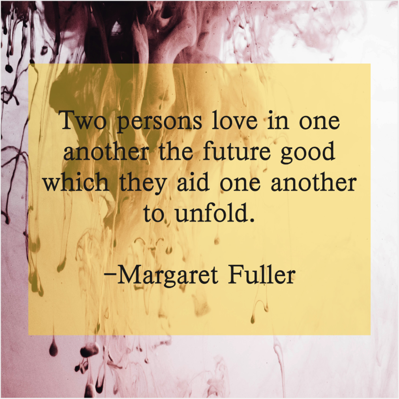 Margaret Fuller Margaret Fuller – Two persons love in one… December 29, 2018 admin “Two persons love in one another the future good which they aid one another to unfold.”-Margaret Fuller