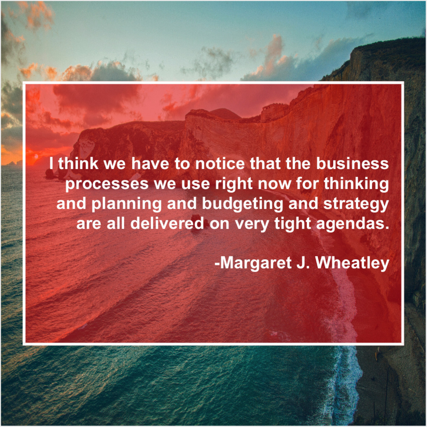 “I think we have to notice that the business processes we use right now for thinking and planning and budgeting and strategy are all delivered on very tight agendas.”