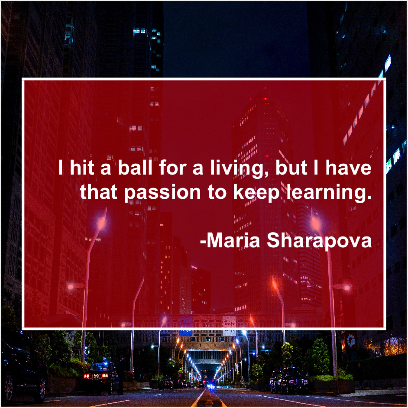 Maria Sharapova Maria Sharapova – I hit a ball for… December 19, 2018 admin “I hit a ball for a living, but I have that passion to keep learning.”-Maria Sharapova