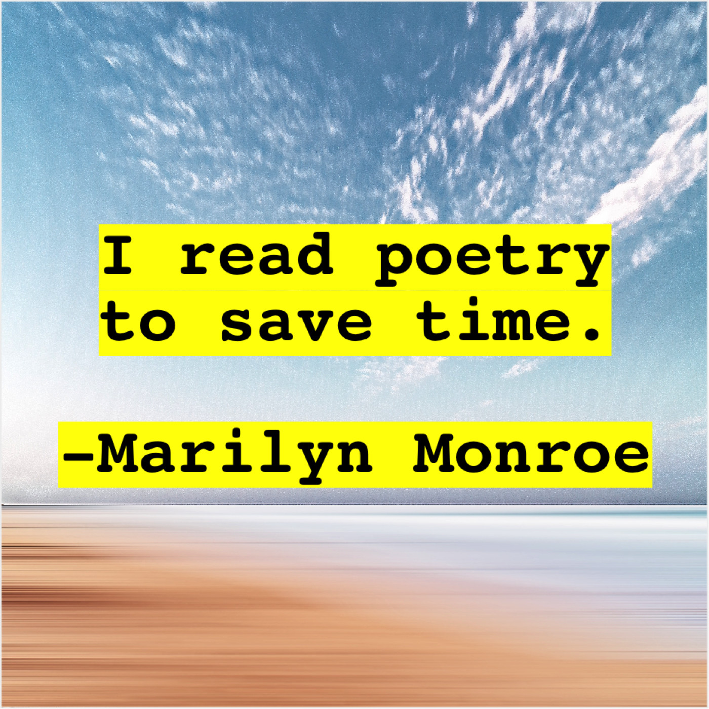 Marilyn Monroe Marilyn Monroe – I read poetry to save… July 25, 2019 admin “I read poetry to save time.”-Marilyn Monroe