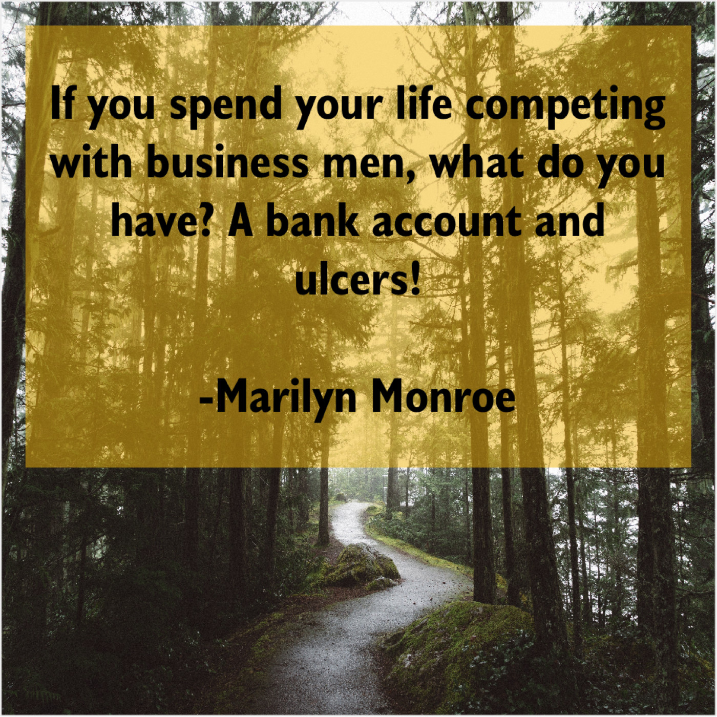 Marilyn Monroe Marilyn Monroe – If you spend your life… April 17, 2019 admin “If you spend your life competing with business men, what do you have? A bank account and ulcers!”-Marilyn Monroe