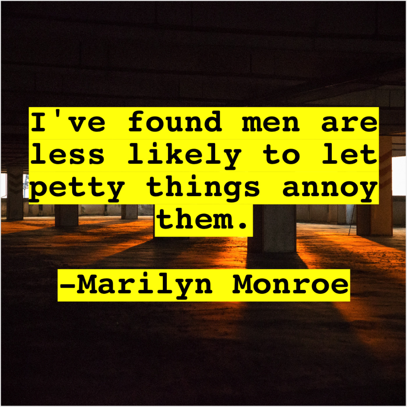 Marilyn Monroe Marilyn Monroe – I’ve found men are less… July 9, 2019 admin “I’ve found men are less likely to let petty things annoy them.”-Marilyn Monroe