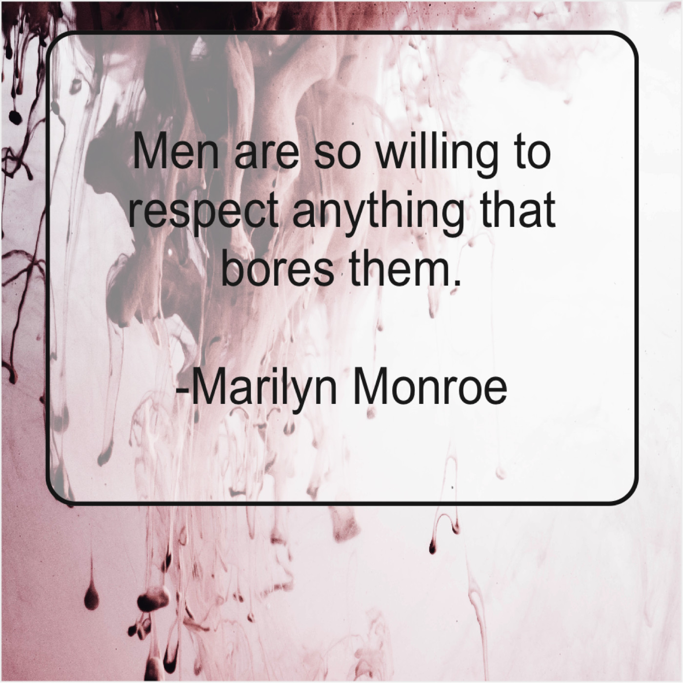 Marilyn Monroe Marilyn Monroe – Men are so willing to… March 24, 2019 admin “Men are so willing to respect anything that bores them.”-Marilyn Monroe