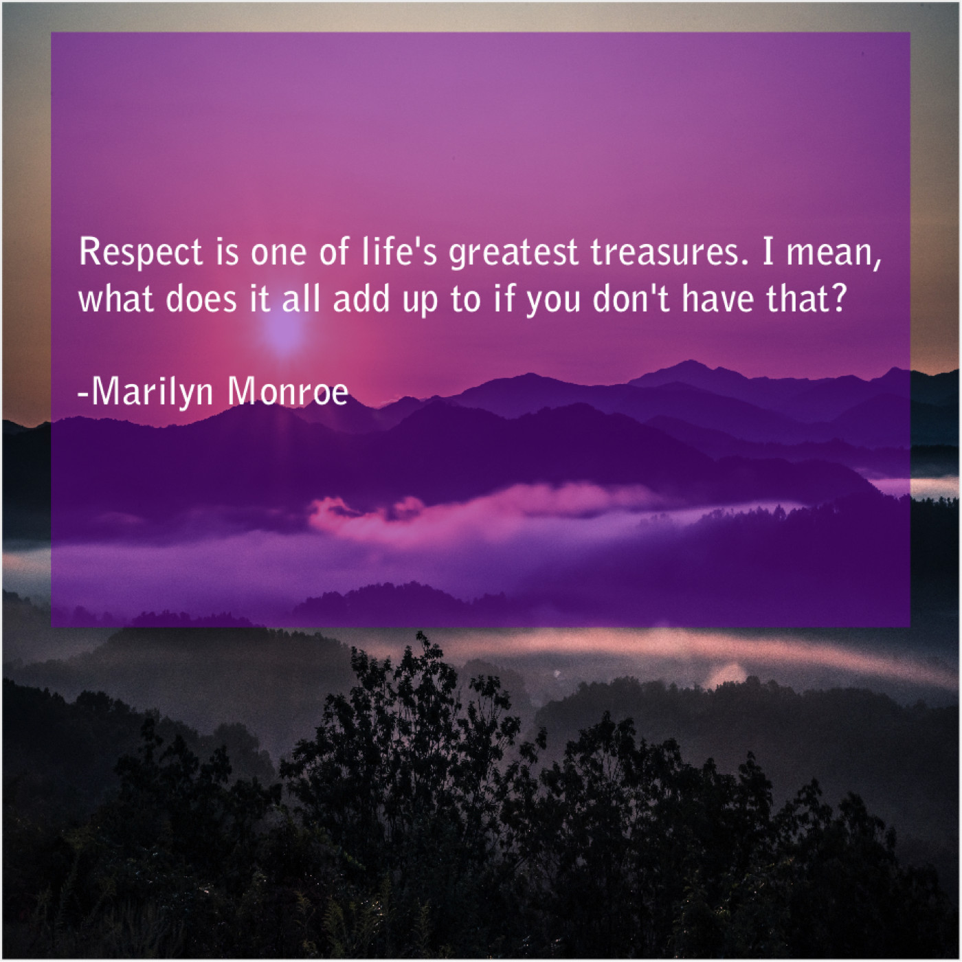 Marilyn Monroe Marilyn Monroe – Respect is one of life’s… July 17, 2019 admin “Respect is one of life’s greatest treasures. I mean, what does it all add up to if you don’t have that?”-Marilyn Monroe