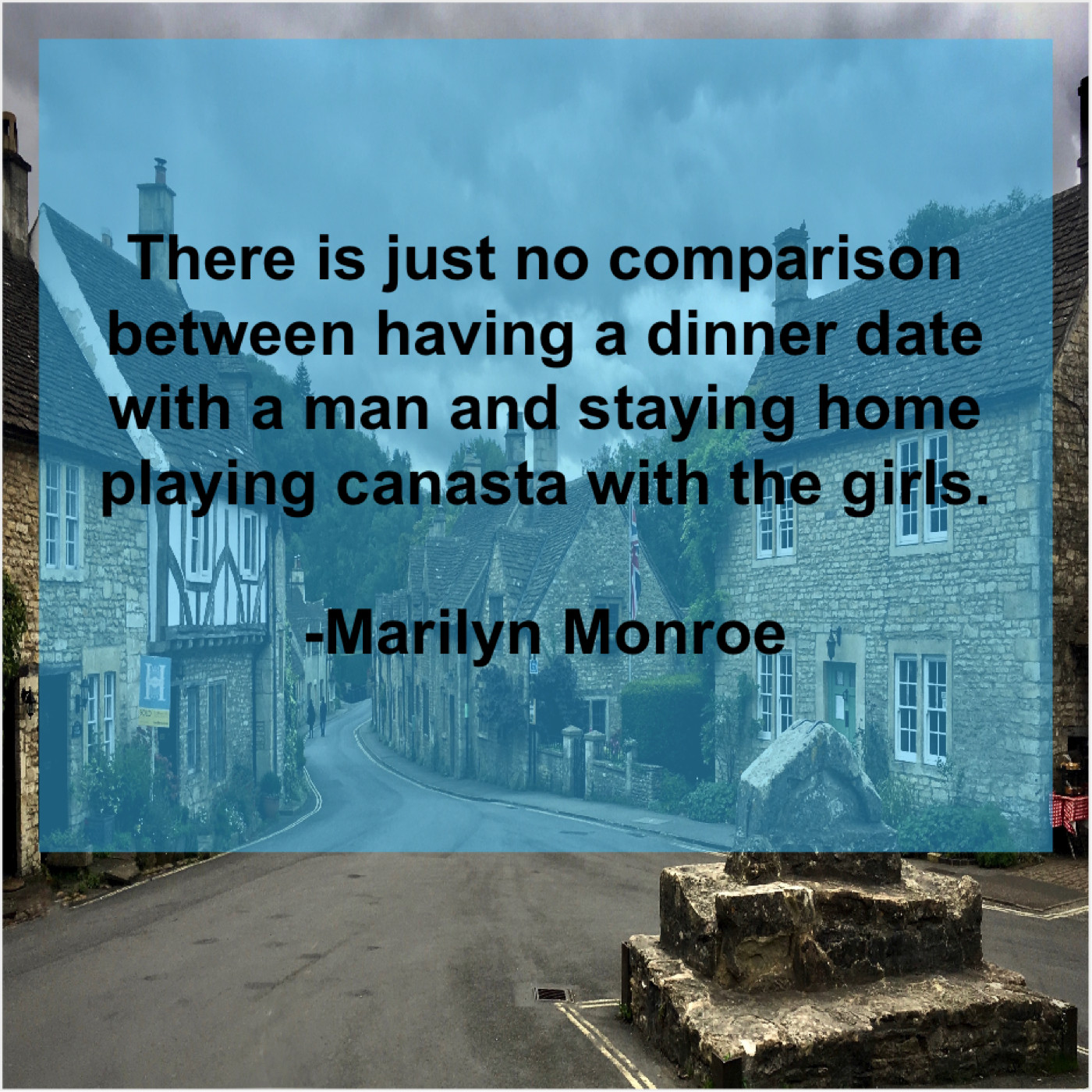 Marilyn Monroe Marilyn Monroe – There is just no comparison… May 19, 2019 admin “There is just no comparison between having a dinner date with a man and staying home playing canasta with the girls.”-Marilyn Monroe
