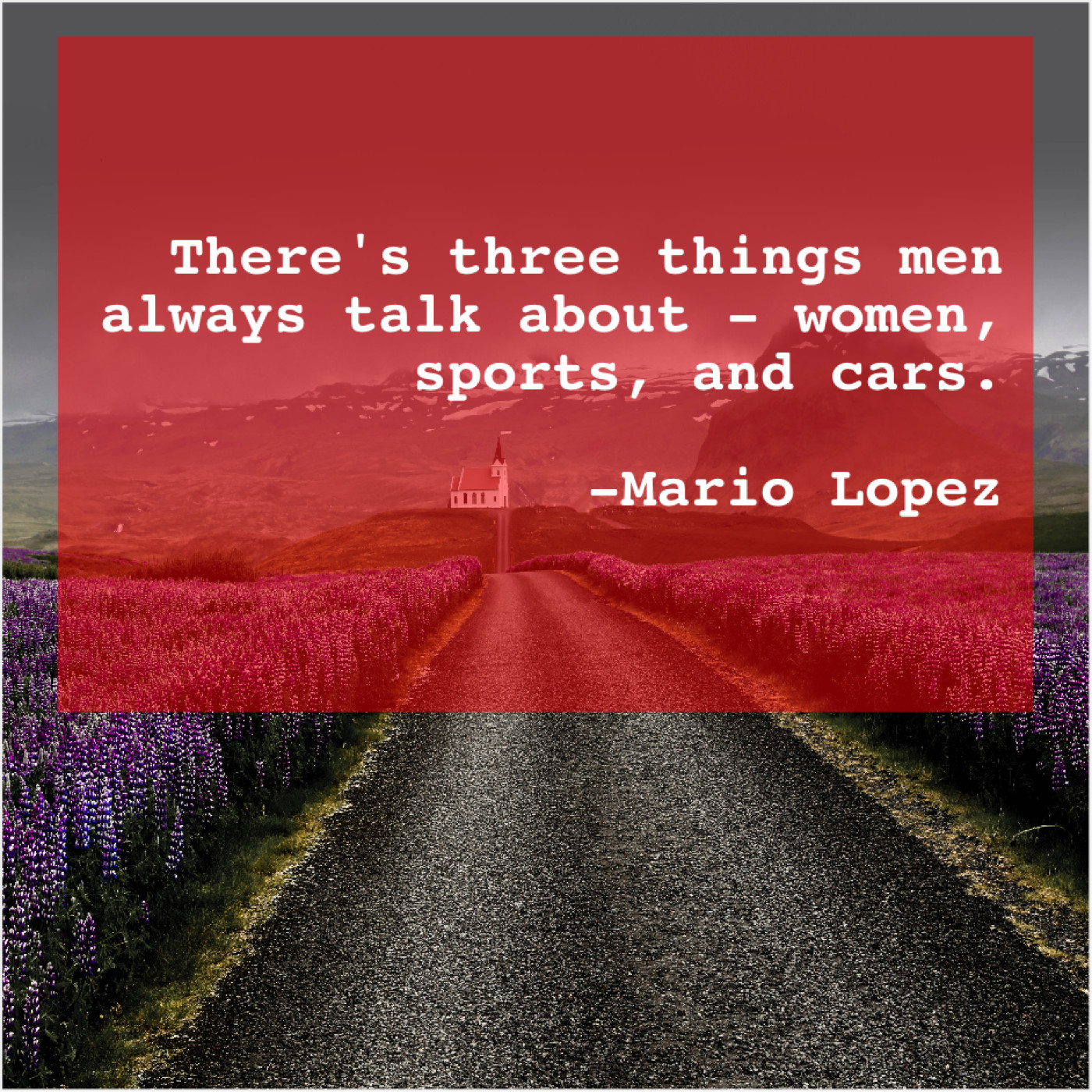 “There’s three things men always talk about – women, sports, and cars.”