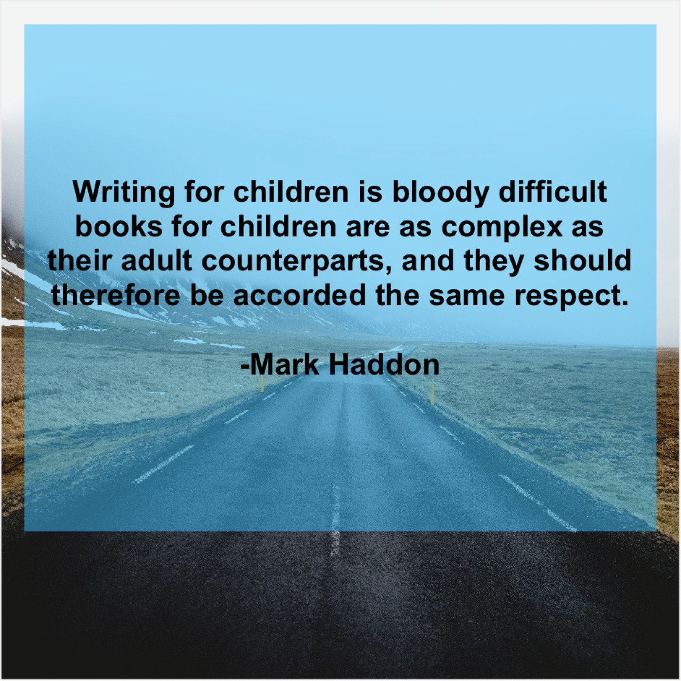 Mark Haddon Mark Haddon – Writing for children is bloody… March 24, 2019 admin “Writing for children is bloody difficult books for children are as complex as their adult counterparts, and they should therefore be accorded the same respect.”-Mark Haddon