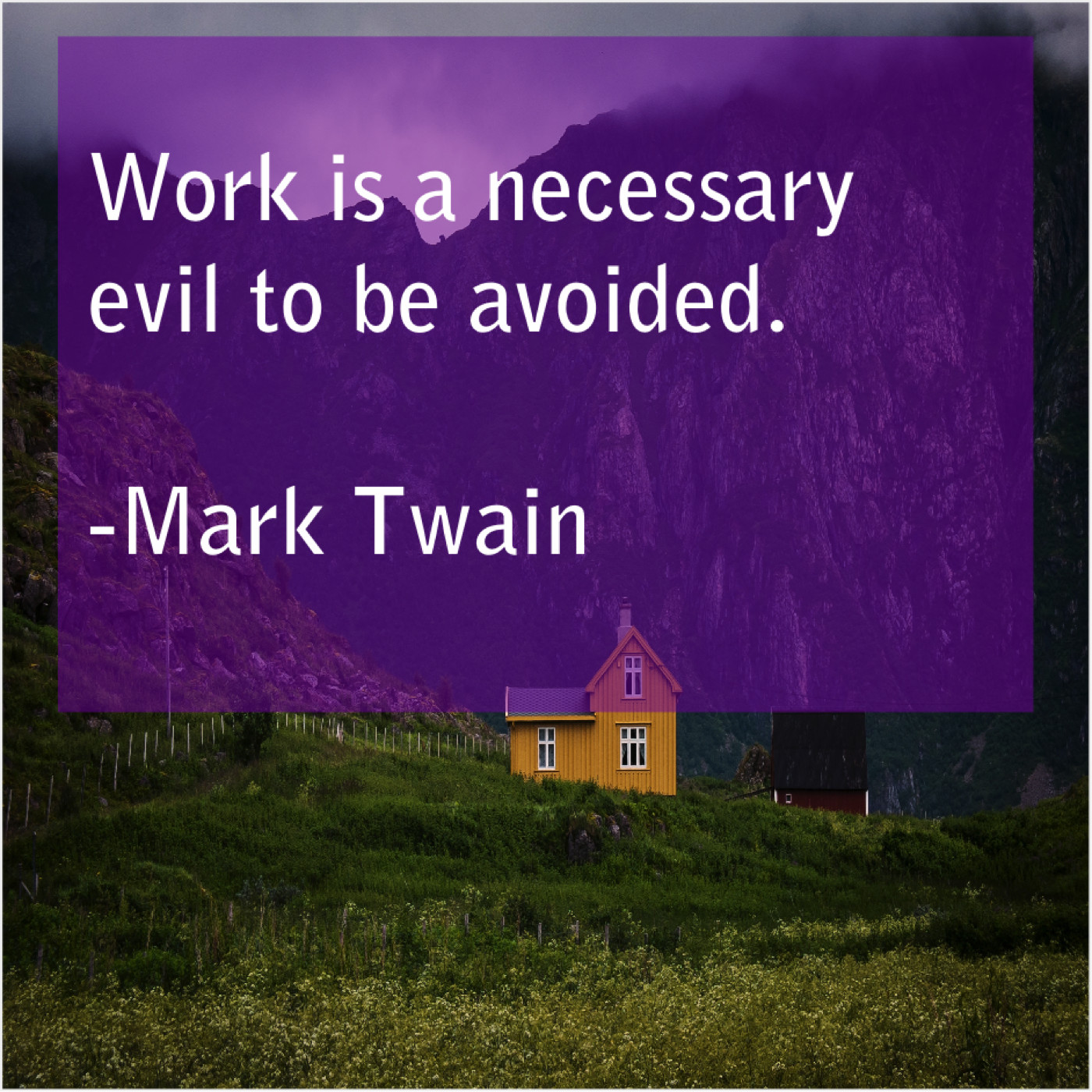 Mark Twain Mark Twain – Work is a necessary evil… April 21, 2019 admin “Work is a necessary evil to be avoided.”-Mark Twain
