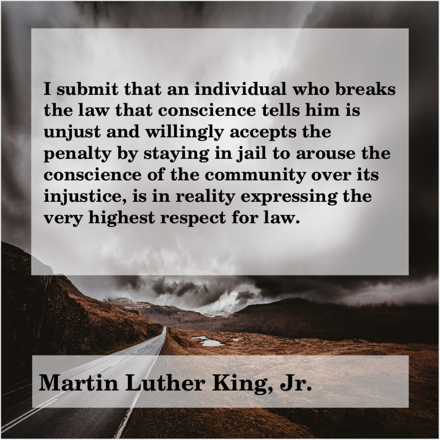 “I submit that an individual who breaks the law that conscience tells him is unjust and willingly accepts the penalty by staying in jail to arouse the conscience of the community over its injustice, is in reality expressing the very highest respect for law.”