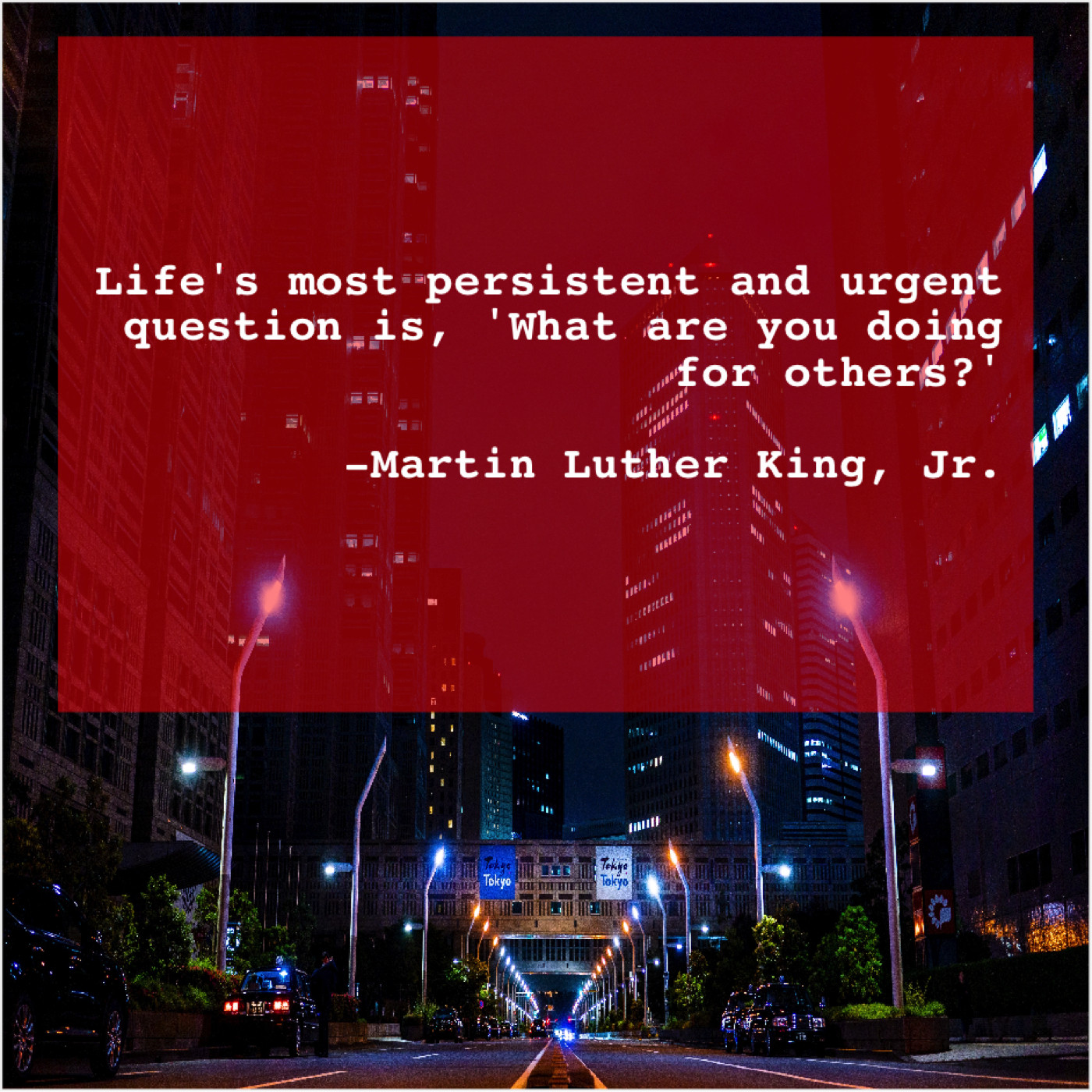 Martin Luther King, Jr. Martin Luther King, Jr. – Life’s most persistent and urgent… September 27, 2019 admin “Life’s most persistent and urgent question is, ‘What are you doing for others?'”-Martin Luther King, Jr.