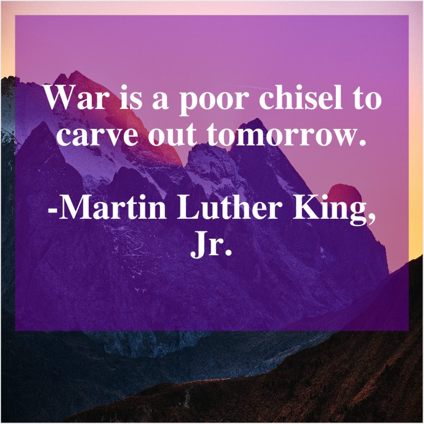 Martin Luther King, Jr. Martin Luther King, Jr. – War is a poor chisel… March 16, 2019 admin “War is a poor chisel to carve out tomorrow.”-Martin Luther King, Jr.