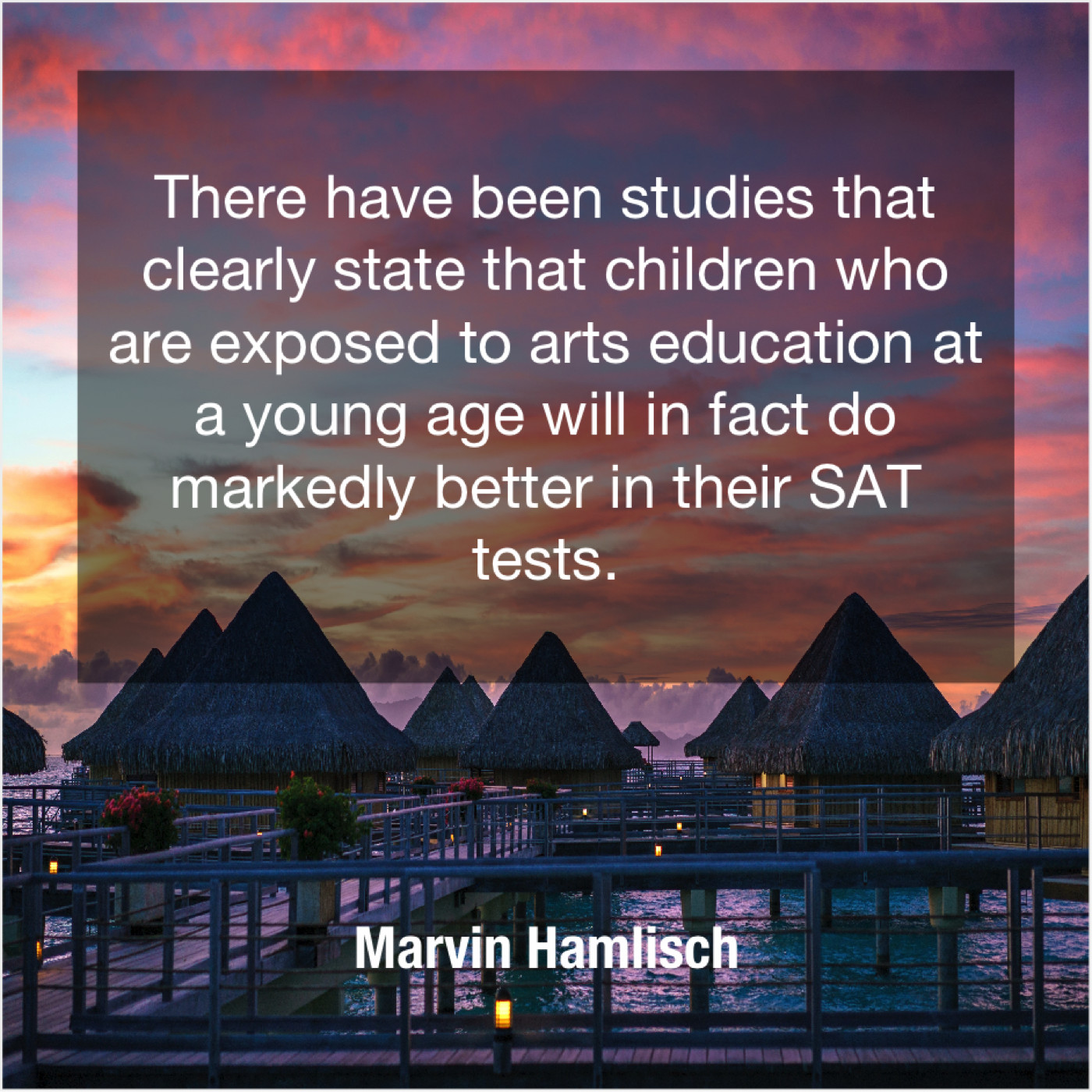 Marvin Hamlisch Marvin Hamlisch – There have been studies that… May 24, 2019 admin “There have been studies that clearly state that children who are exposed to arts education at a young age will in fact do markedly better in their SAT tests.”-Marvin Hamlisch