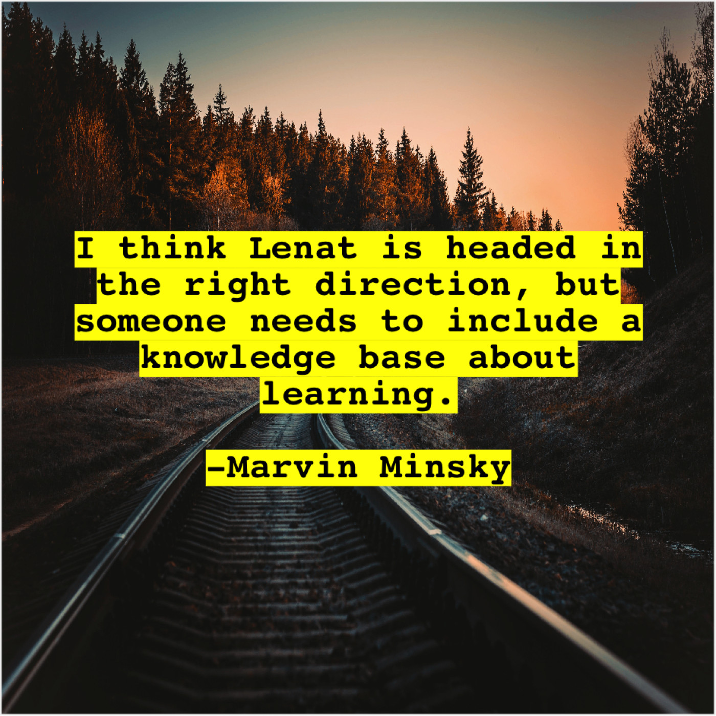 Marvin Minsky Marvin Minsky – I think Lenat is headed… October 8, 2019 admin “I think Lenat is headed in the right direction, but someone needs to include a knowledge base about learning.”-Marvin Minsky