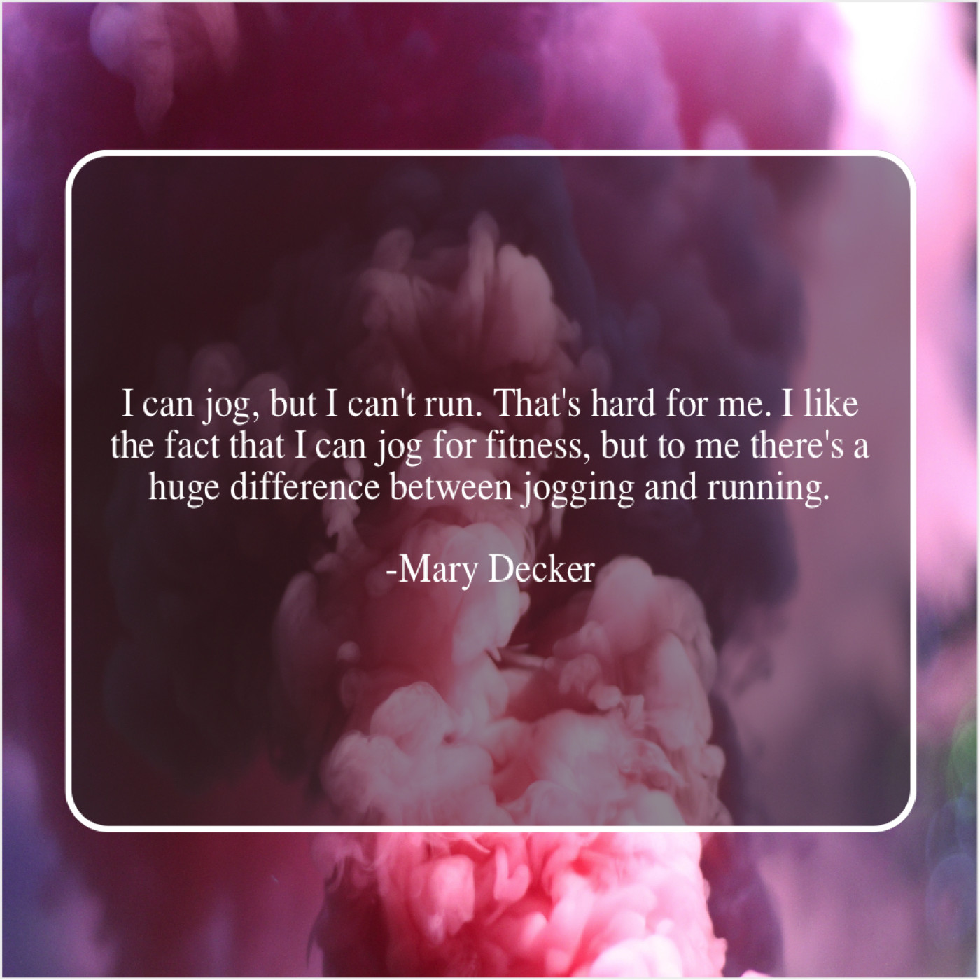 “I can jog, but I can’t run. That’s hard for me. I like the fact that I can jog for fitness, but to me there’s a huge difference between jogging and running.”