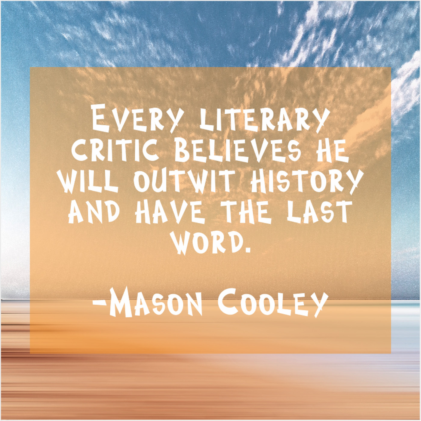 Mason Cooley Mason Cooley – Every literary critic believes he… July 14, 2019 admin “Every literary critic believes he will outwit history and have the last word.”-Mason Cooley