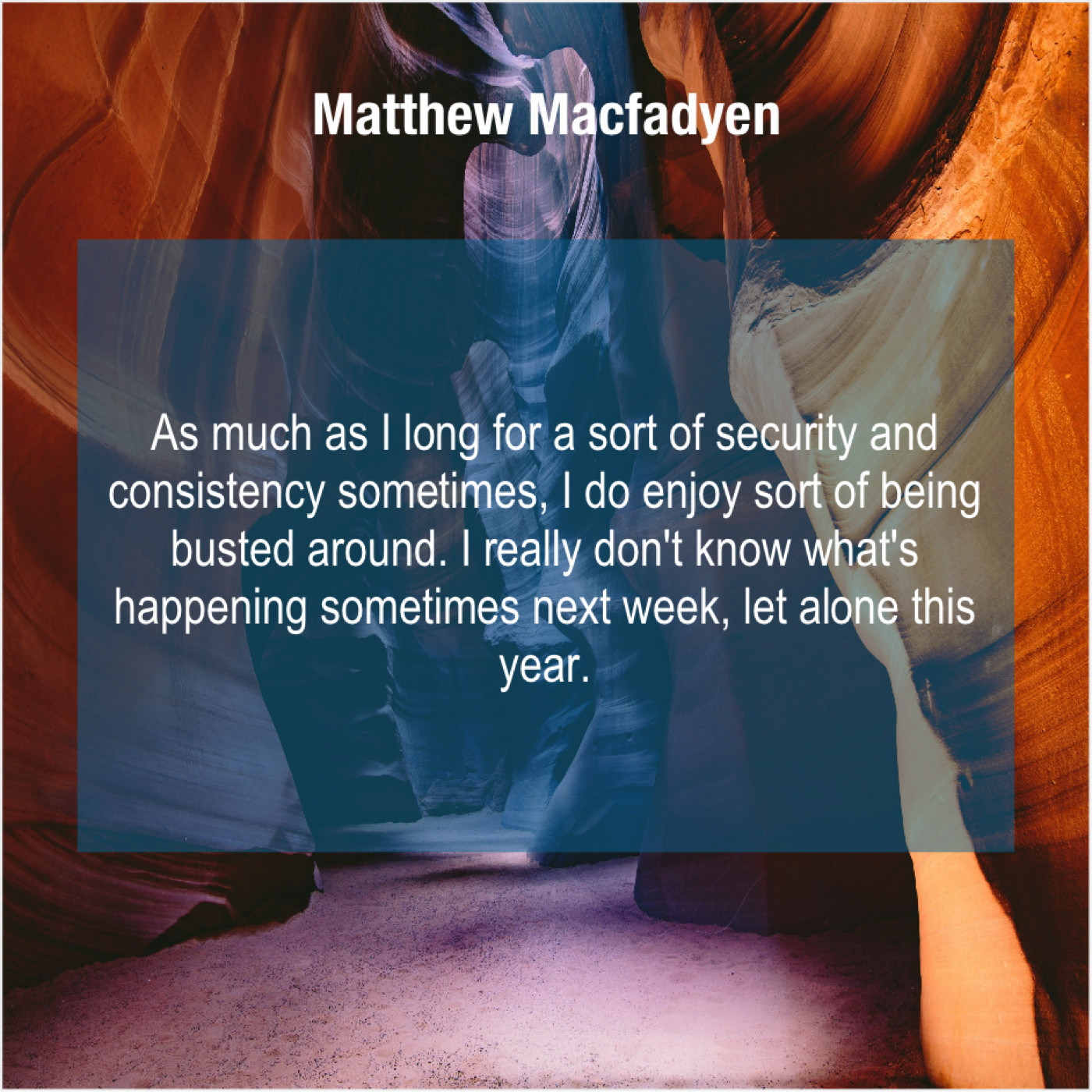 Matthew Macfadyen Matthew Macfadyen – As much as I long… January 7, 2019 admin “As much as I long for a sort of security and consistency sometimes, I do enjoy sort of being busted around. I really don’t know what’s happening sometimes next week, let alone this year.”-Matthew Macfadyen