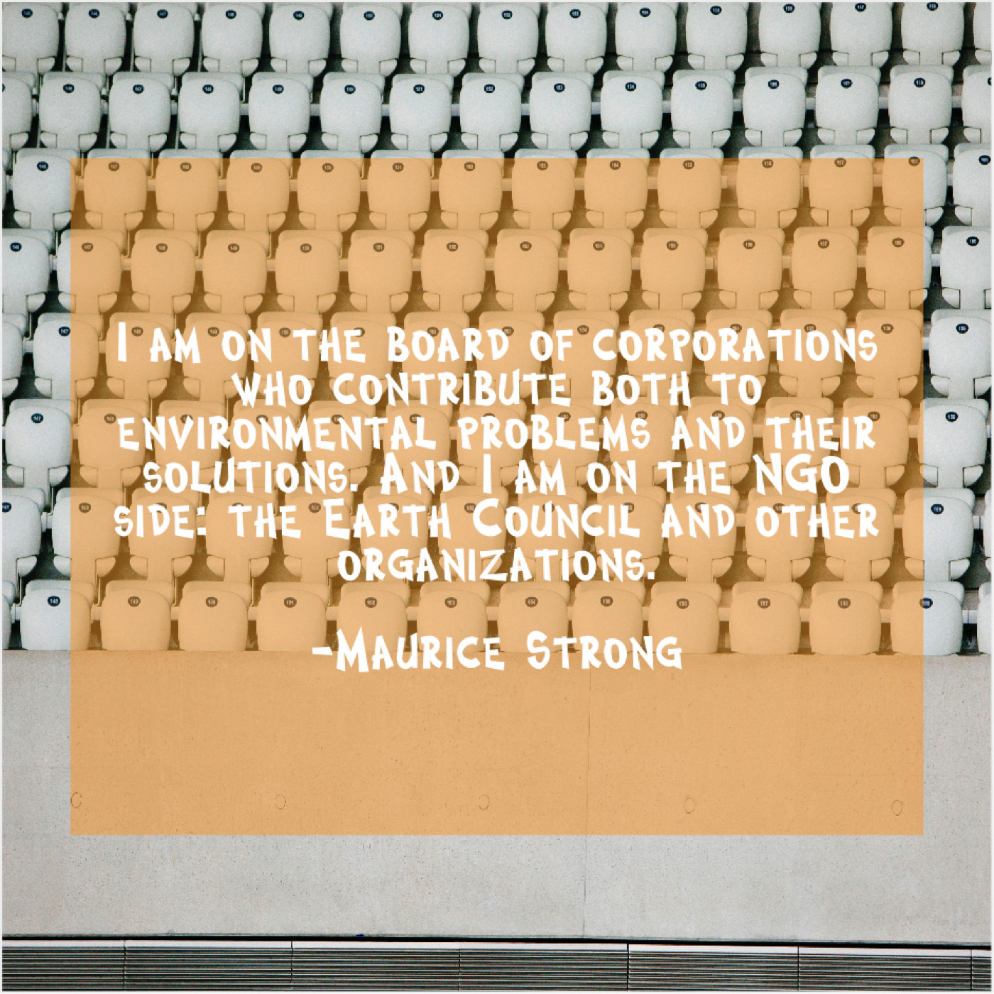 Maurice Strong Maurice Strong – I am on the board… January 22, 2019 admin “I am on the board of corporations who contribute both to environmental problems and their solutions. And I am on the NGO side: the Earth Council and other organizations.”-Maurice Strong