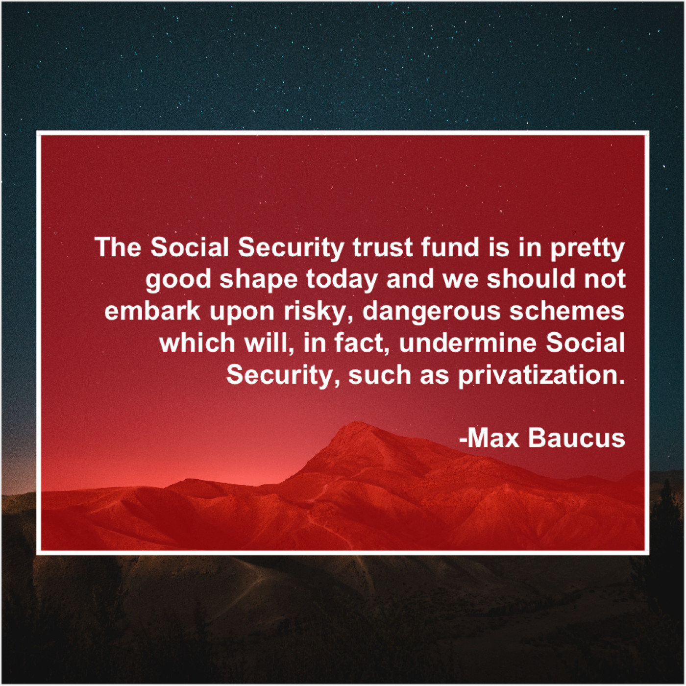 Max Baucus Max Baucus – The Social Security trust fund… February 24, 2019 admin “The Social Security trust fund is in pretty good shape today and we should not embark upon risky, dangerous schemes which will, in fact, undermine Social Security, such as privatization.”-Max Baucus