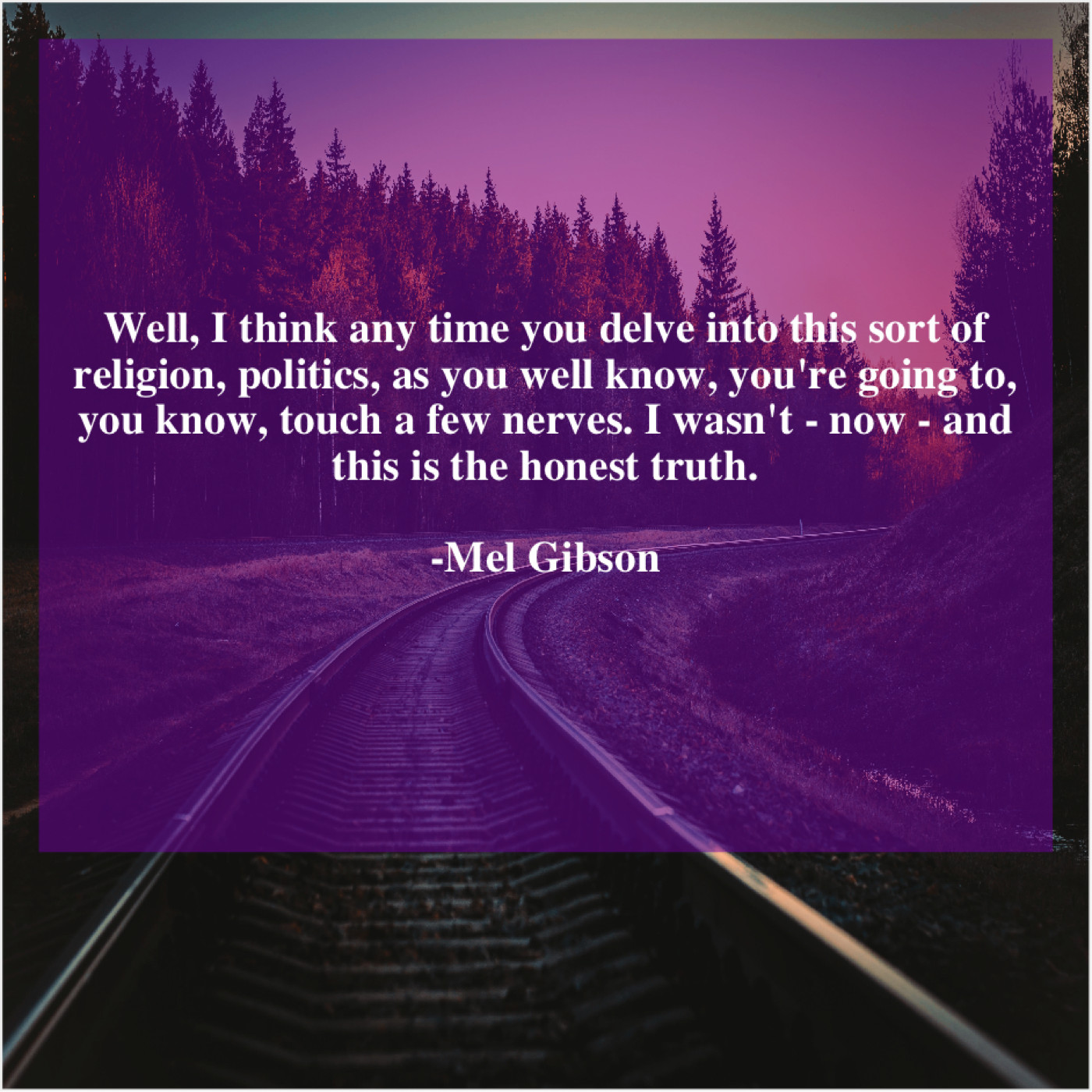 Mel Gibson Mel Gibson – Well, I think any time… March 11, 2019 admin “Well, I think any time you delve into this sort of religion, politics, as you well know, you’re going to, you know, touch a few nerves. I wasn’t – now – and this is the honest truth.”-Mel Gibson