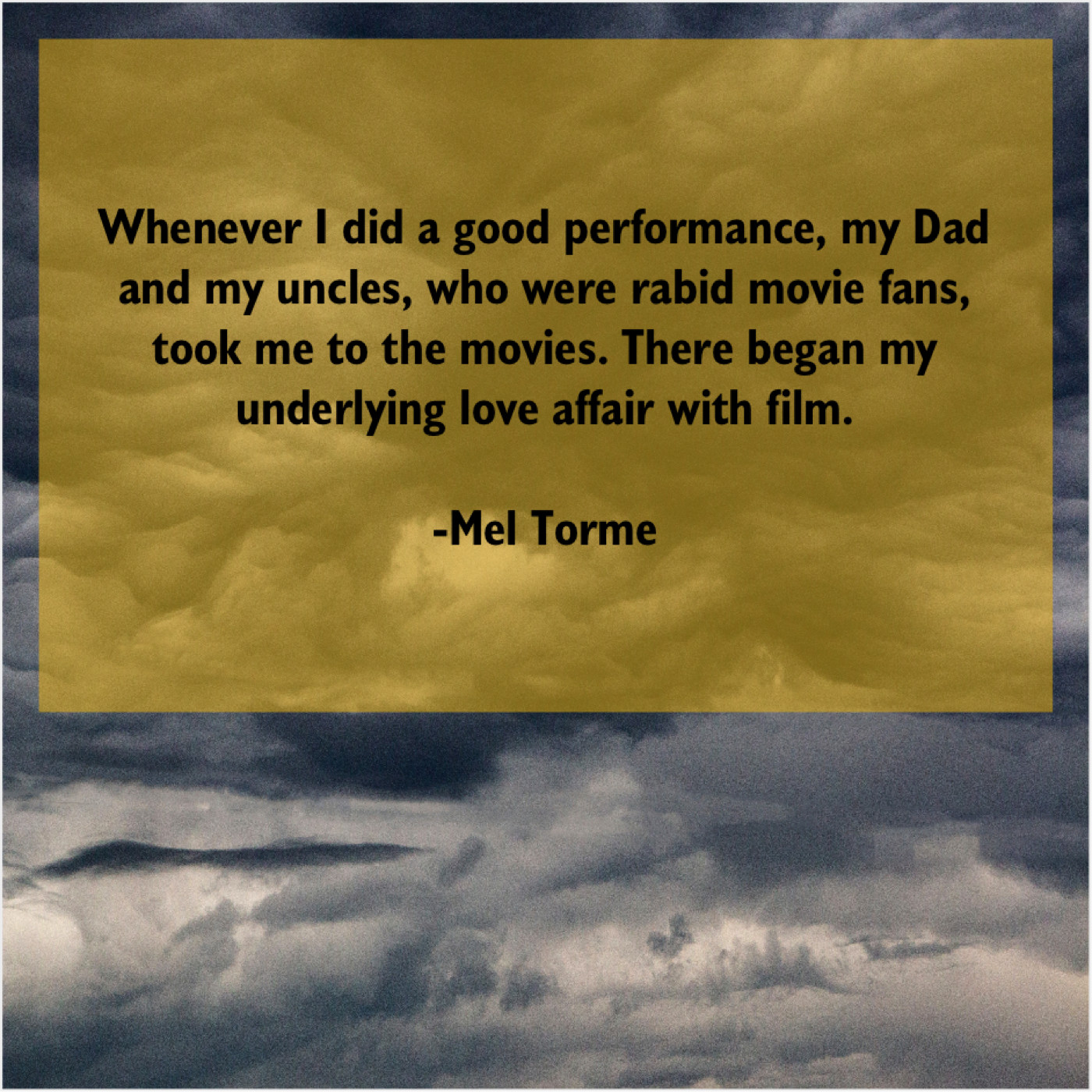 Mel Torme Mel Torme – Whenever I did a good… November 19, 2018 admin “Whenever I did a good performance, my Dad and my uncles, who were rabid movie fans, took me to the movies. There began my underlying love affair with film.”-Mel Torme