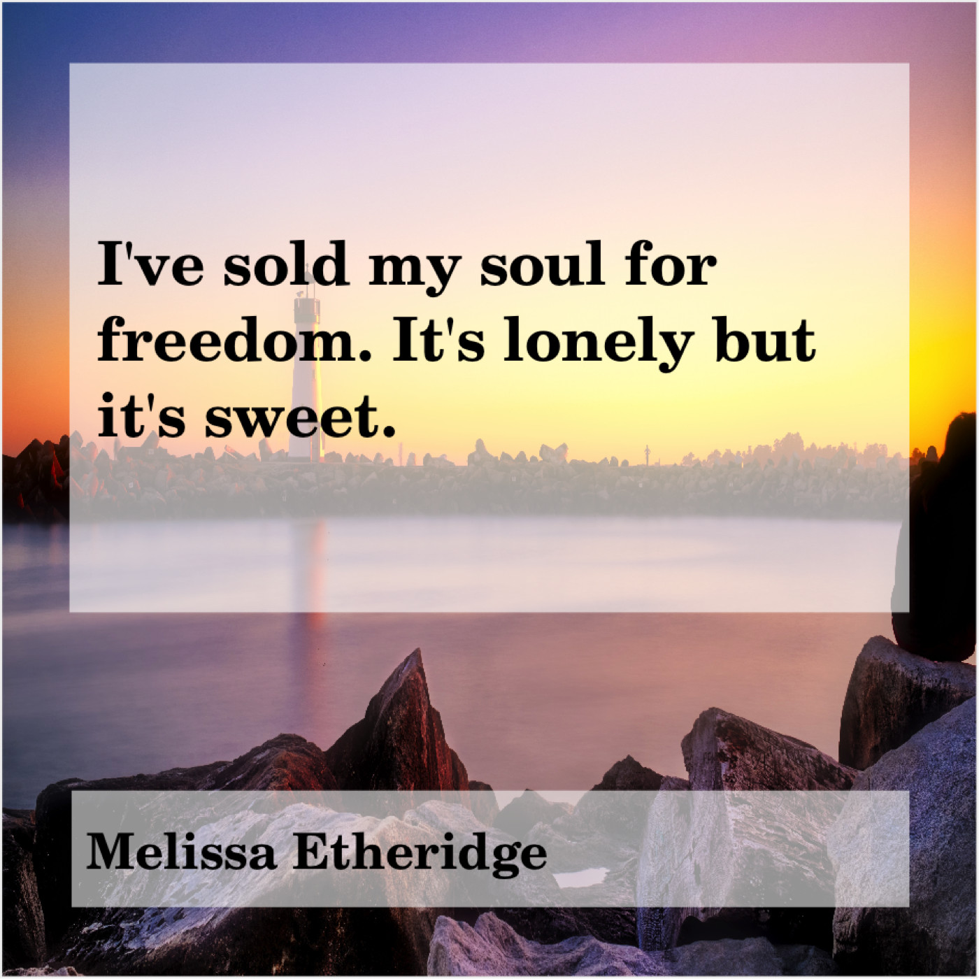 “I’ve sold my soul for freedom. It’s lonely but it’s sweet.”