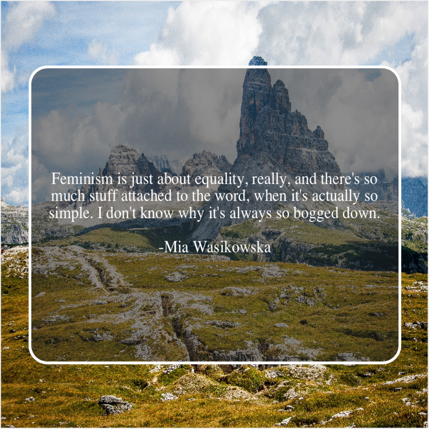 Mia Wasikowska Mia Wasikowska – Feminism is just about equality… January 29, 2019 admin “Feminism is just about equality, really, and there’s so much stuff attached to the word, when it’s actually so simple. I don’t know why it’s always so bogged down.”-Mia Wasikowska