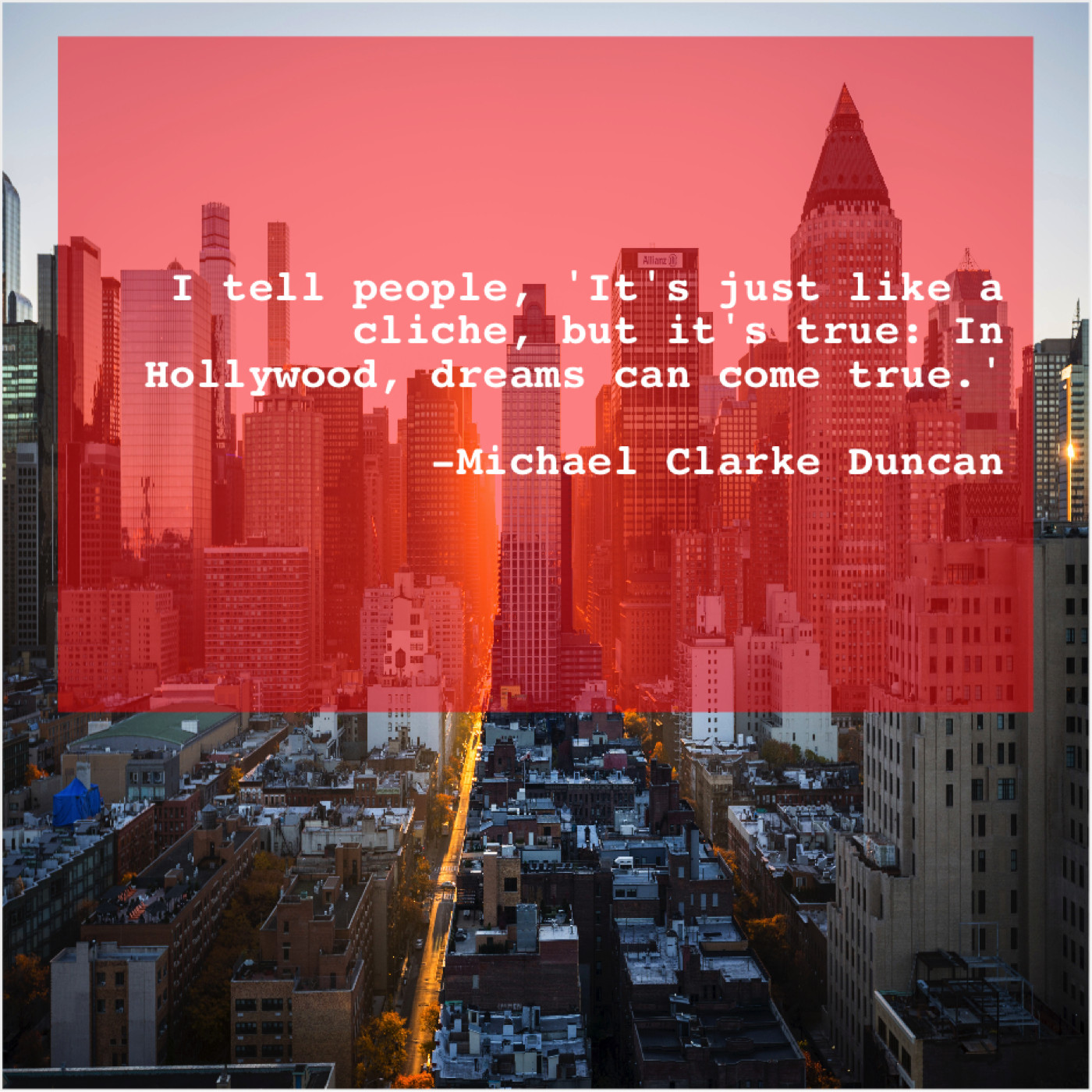 Michael Clarke Duncan Michael Clarke Duncan – I tell people, ‘It’s just… January 21, 2019 admin “I tell people, ‘It’s just like a cliche, but it’s true: In Hollywood, dreams can come true.'”-Michael Clarke Duncan