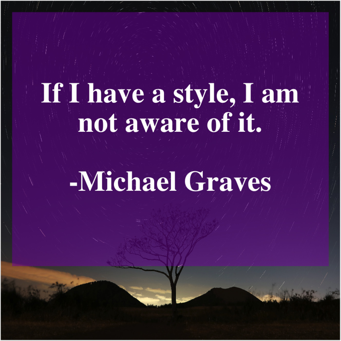 Michael Graves Michael Graves – If I have a style… July 6, 2019 admin “If I have a style, I am not aware of it.”-Michael Graves