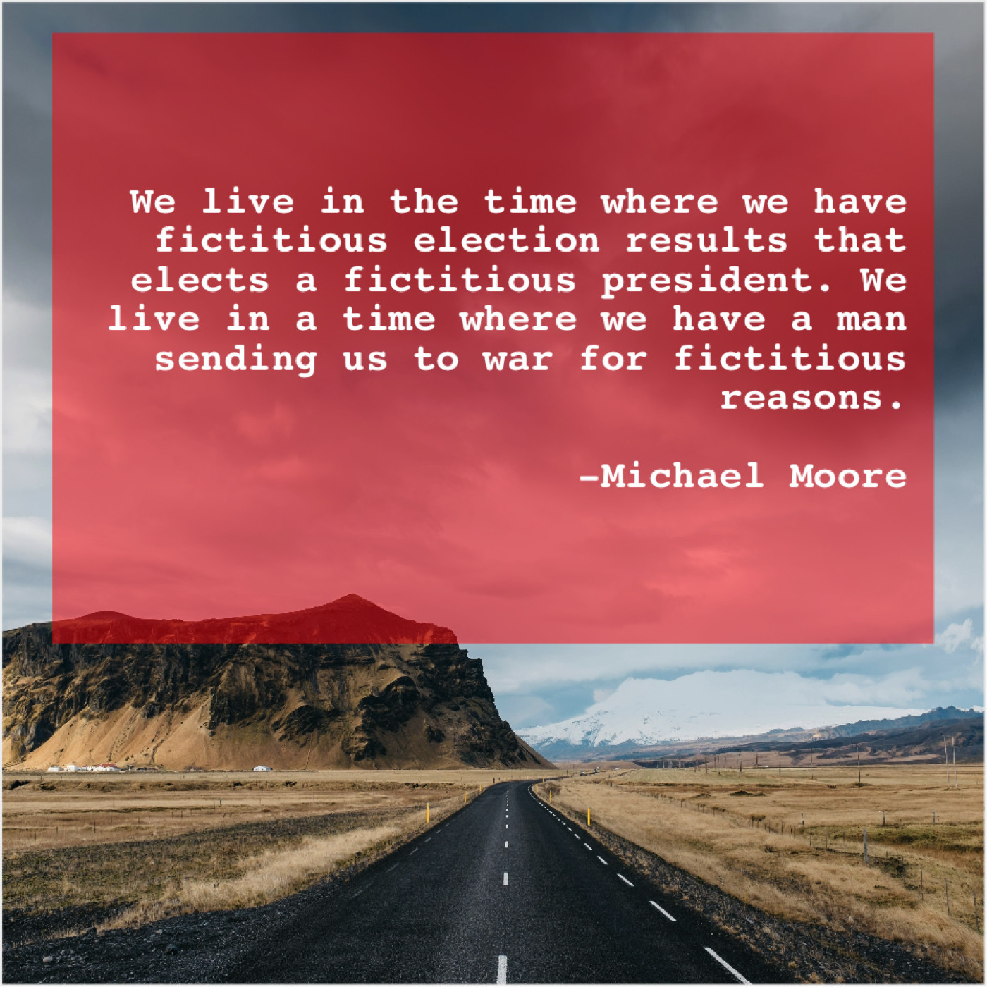 Michael Moore Michael Moore – We live in the time… December 15, 2018 admin “We live in the time where we have fictitious election results that elects a fictitious president. We live in a time where we have a man sending us to war for fictitious reasons.”-Michael Moore