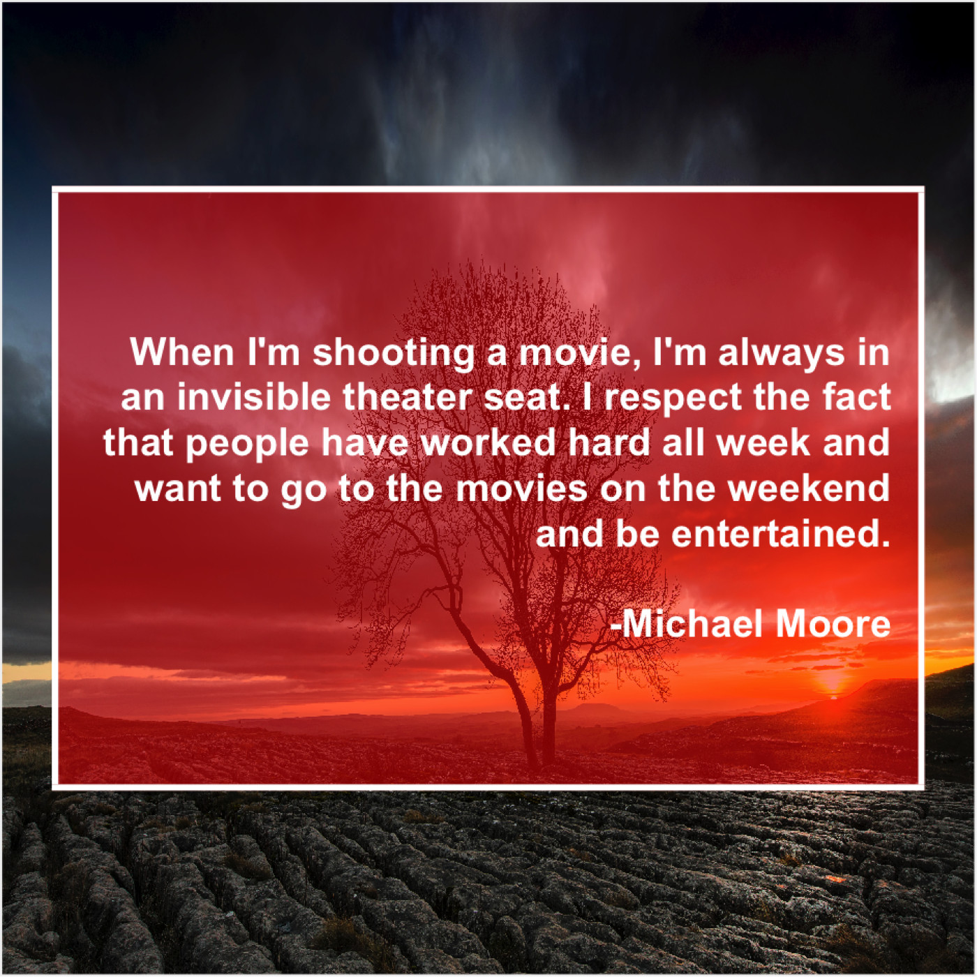 Michael Moore Michael Moore – When I’m shooting a movie… December 16, 2018 admin “When I’m shooting a movie, I’m always in an invisible theater seat. I respect the fact that people have worked hard all week and want to go to the movies on the weekend and be entertained.”-Michael Moore