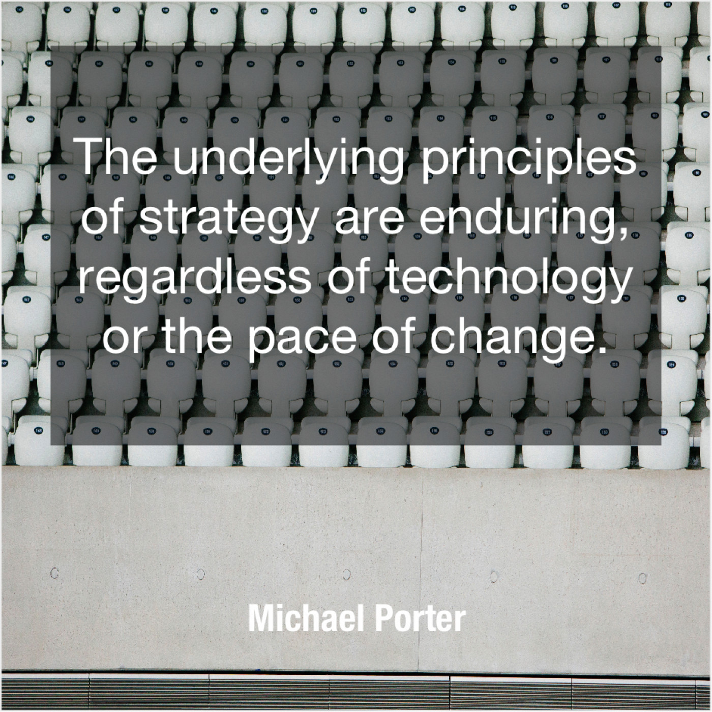 Michael Porter Michael Porter – The underlying principles of strategy… September 11, 2019 admin “The underlying principles of strategy are enduring, regardless of technology or the pace of change.”-Michael Porter