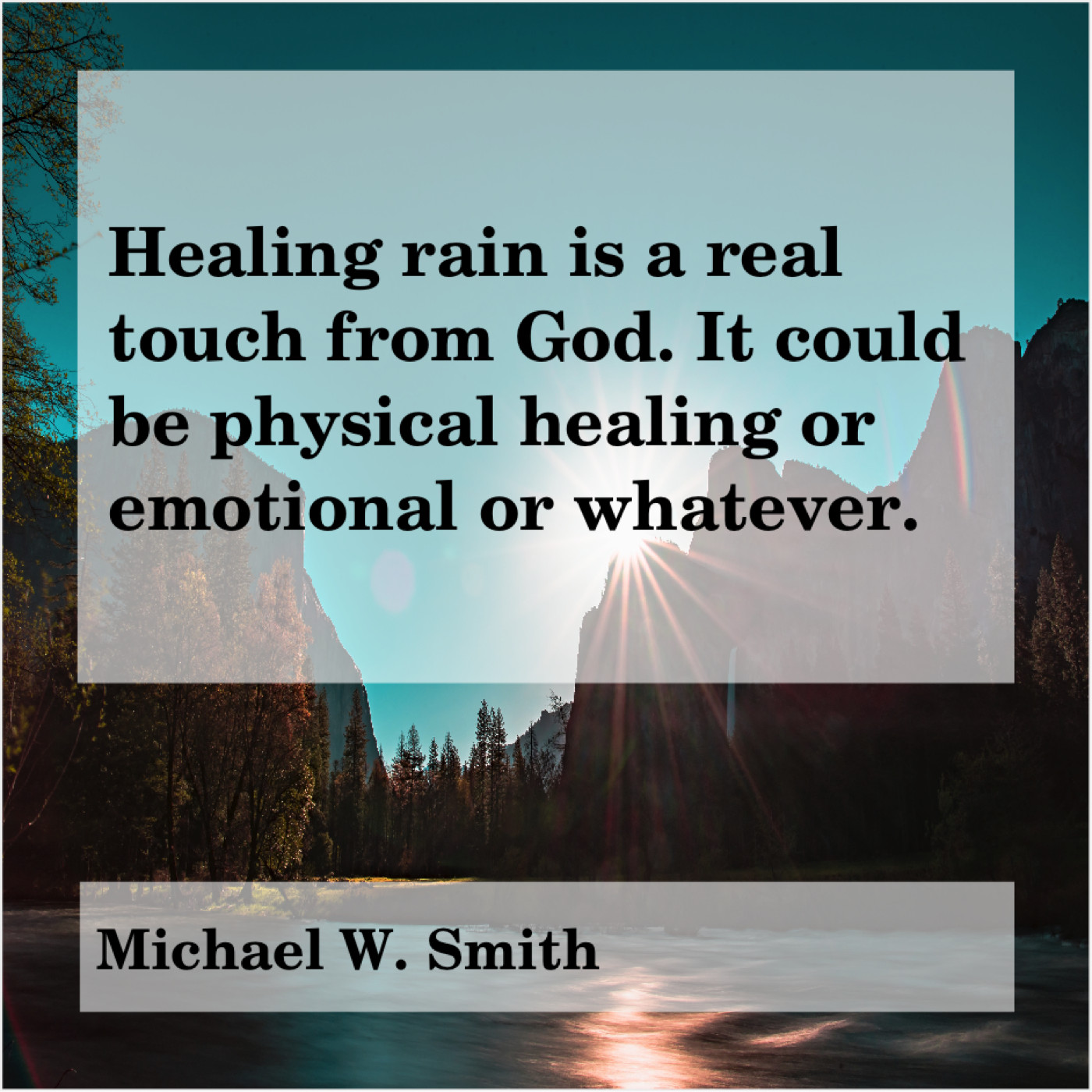 Michael W. Smith Michael W. Smith – Healing rain is a real… June 28, 2019 admin “Healing rain is a real touch from God. It could be physical healing or emotional or whatever.”-Michael W. Smith