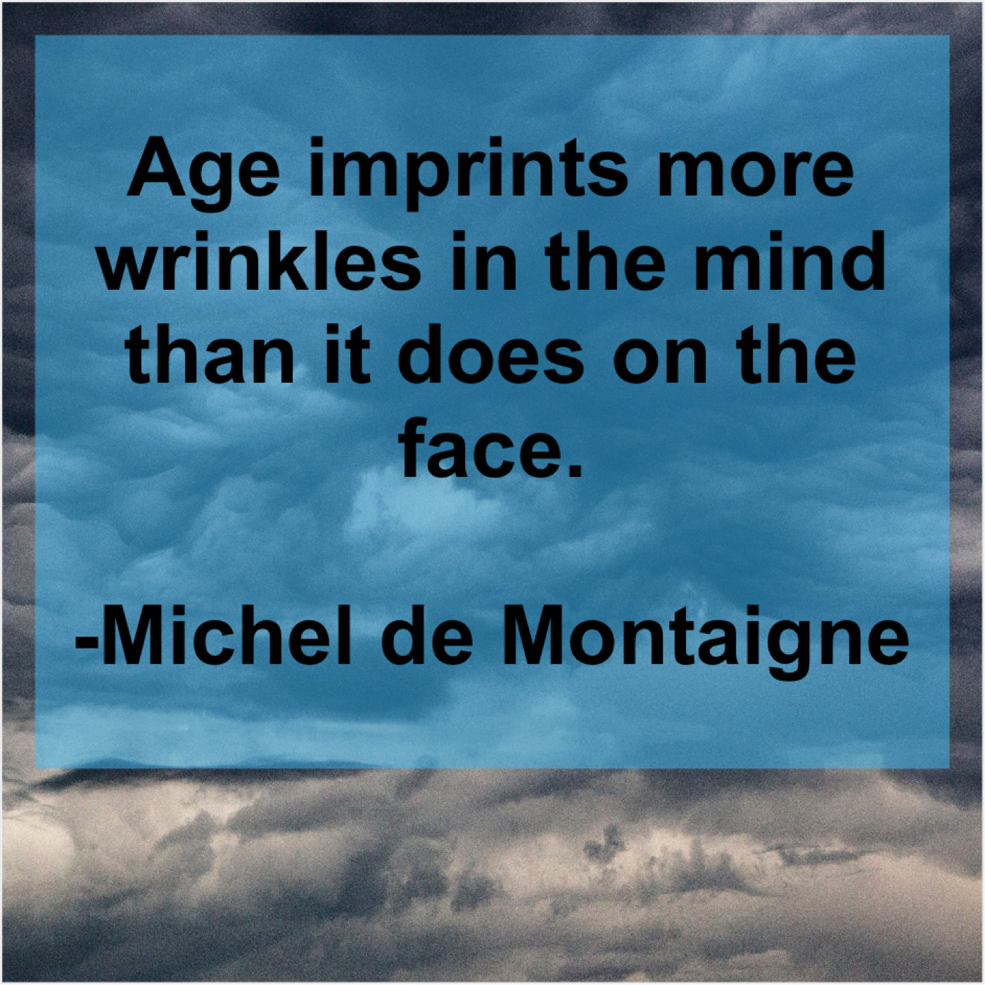 Michel de Montaigne Michel de Montaigne – Age imprints more wrinkles in… September 22, 2019 admin “Age imprints more wrinkles in the mind than it does on the face.”-Michel de Montaigne