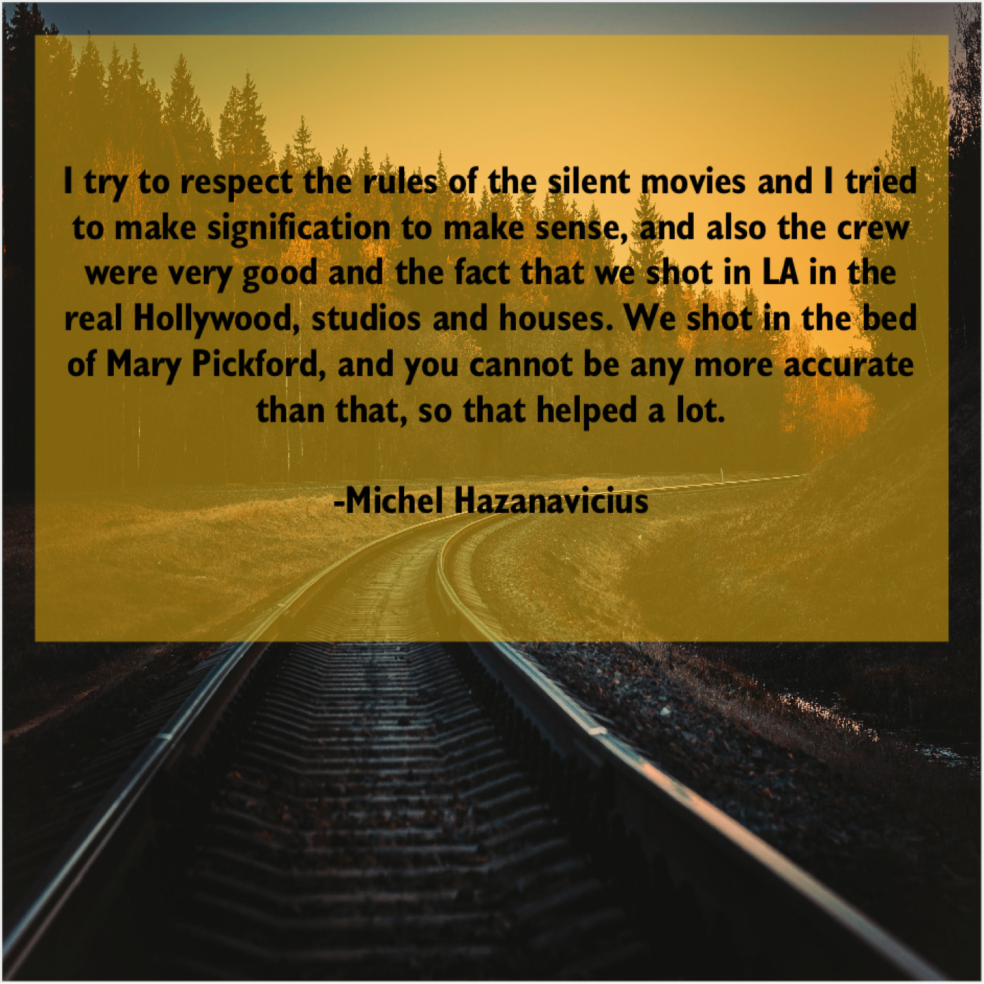 “I try to respect the rules of the silent movies and I tried to make signification to make sense, and also the crew were very good and the fact that we shot in LA in the real Hollywood, studios and houses. We shot in the bed of Mary Pickford, and you cannot be any more accurate than that, so that helped a lot.”