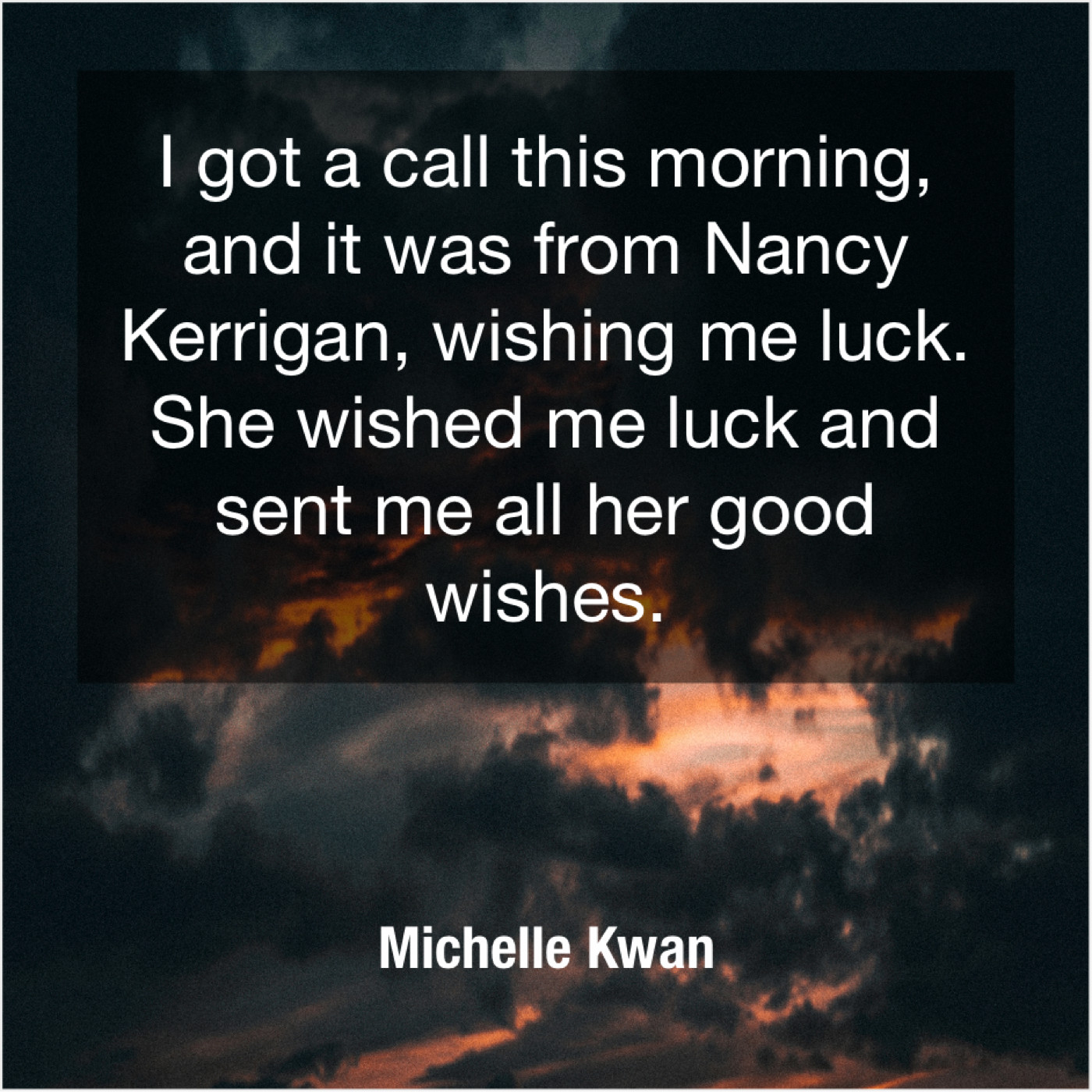 Michelle Kwan Michelle Kwan – I got a call this… March 21, 2019 admin “I got a call this morning, and it was from Nancy Kerrigan, wishing me luck. She wished me luck and sent me all her good wishes.”-Michelle Kwan