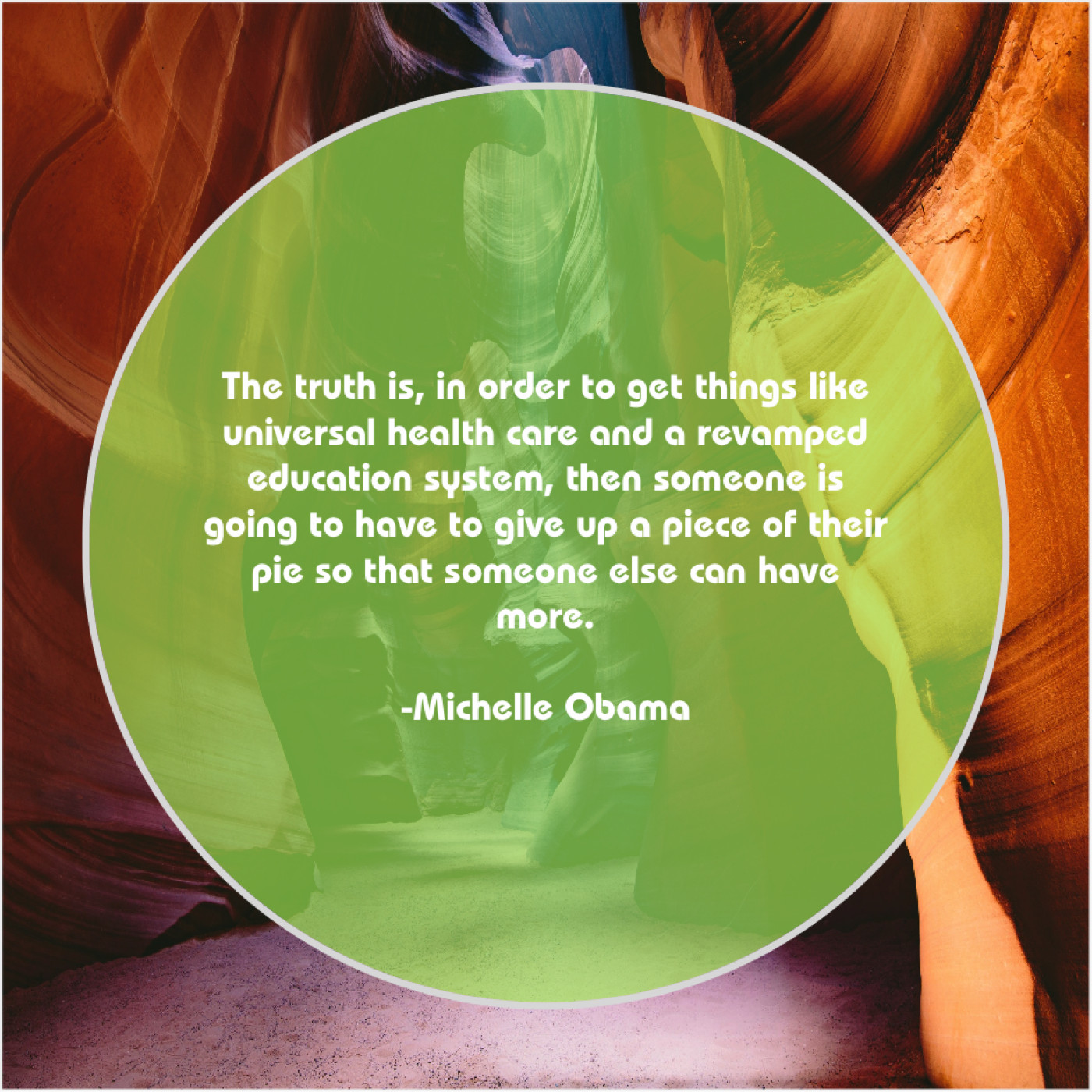 Michelle Obama Michelle Obama – The truth is, in order… April 30, 2019 admin “The truth is, in order to get things like universal health care and a revamped education system, then someone is going to have to give up a piece of their pie so that someone else can have more.”-Michelle Obama