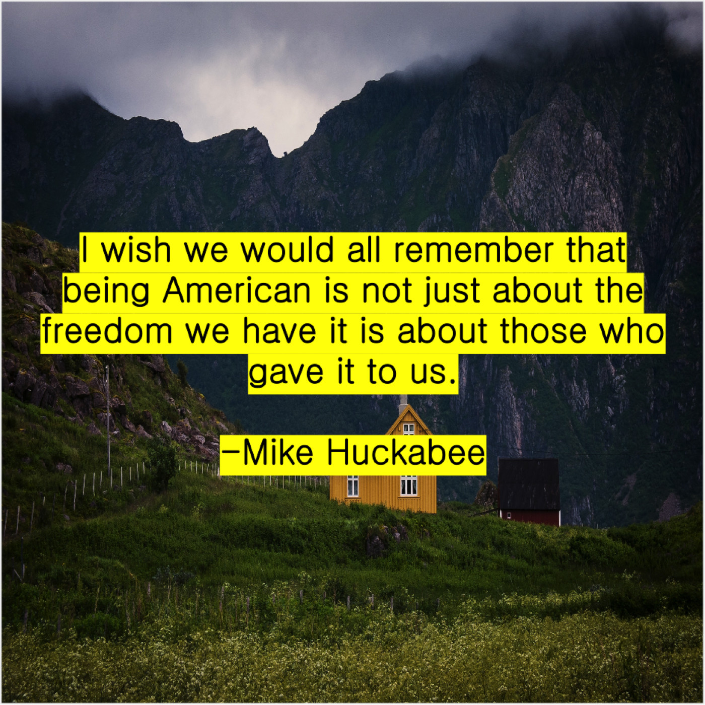 Mike Huckabee Mike Huckabee – I wish we would all… April 27, 2019 admin “I wish we would all remember that being American is not just about the freedom we have it is about those who gave it to us.”-Mike Huckabee