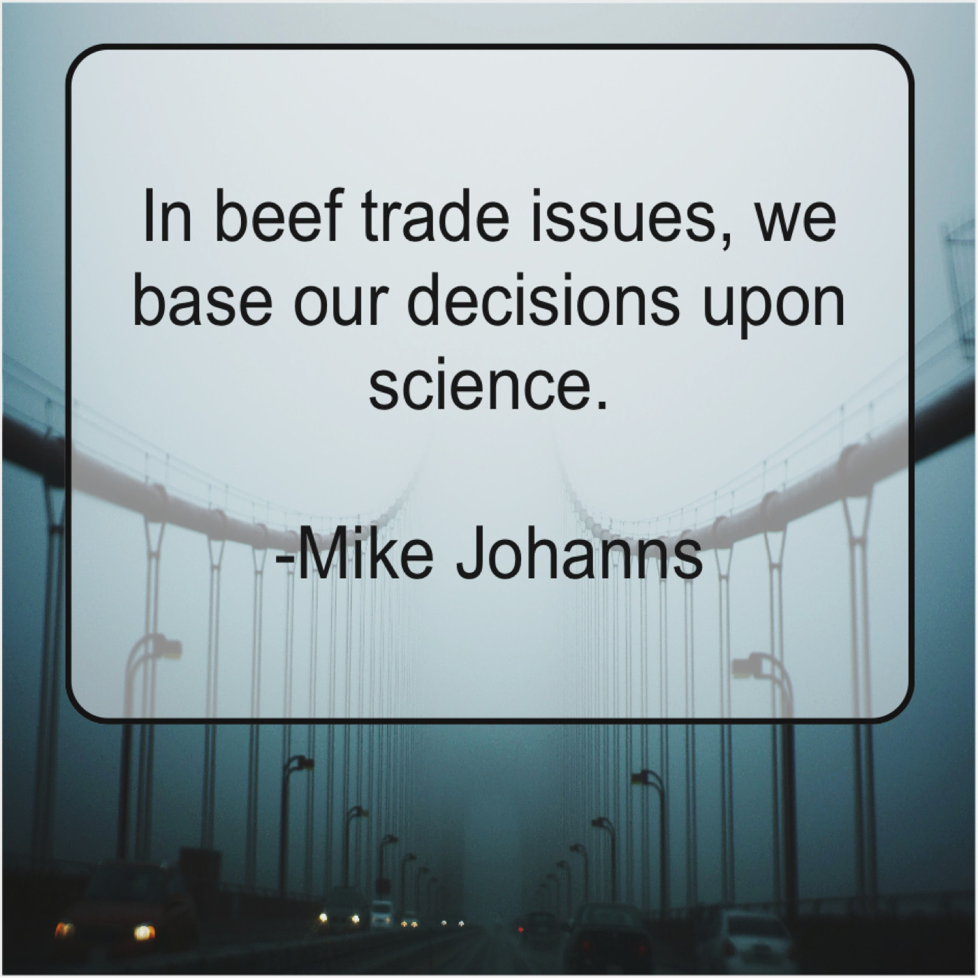 Mike Johanns Mike Johanns – In beef trade issues, we… May 6, 2019 admin “In beef trade issues, we base our decisions upon science.”-Mike Johanns