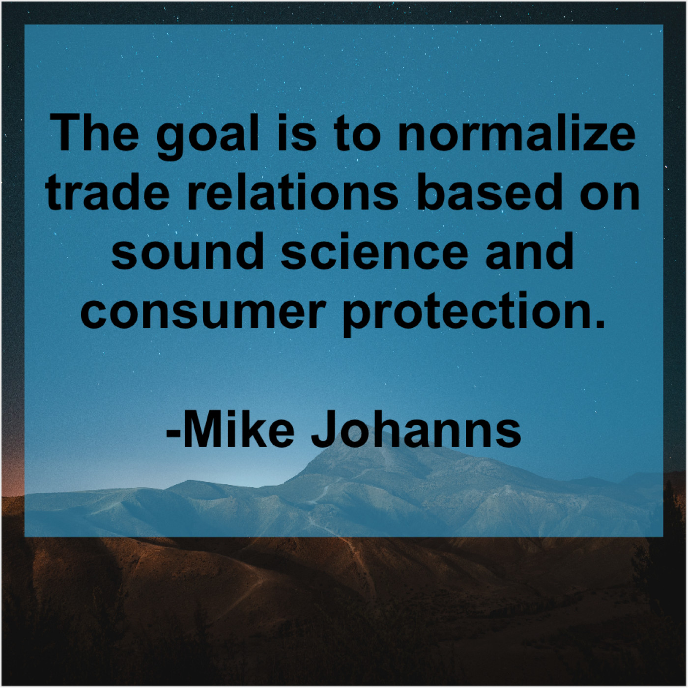Mike Johanns Mike Johanns – The goal is to normalize… September 9, 2019 admin “The goal is to normalize trade relations based on sound science and consumer protection.”-Mike Johanns