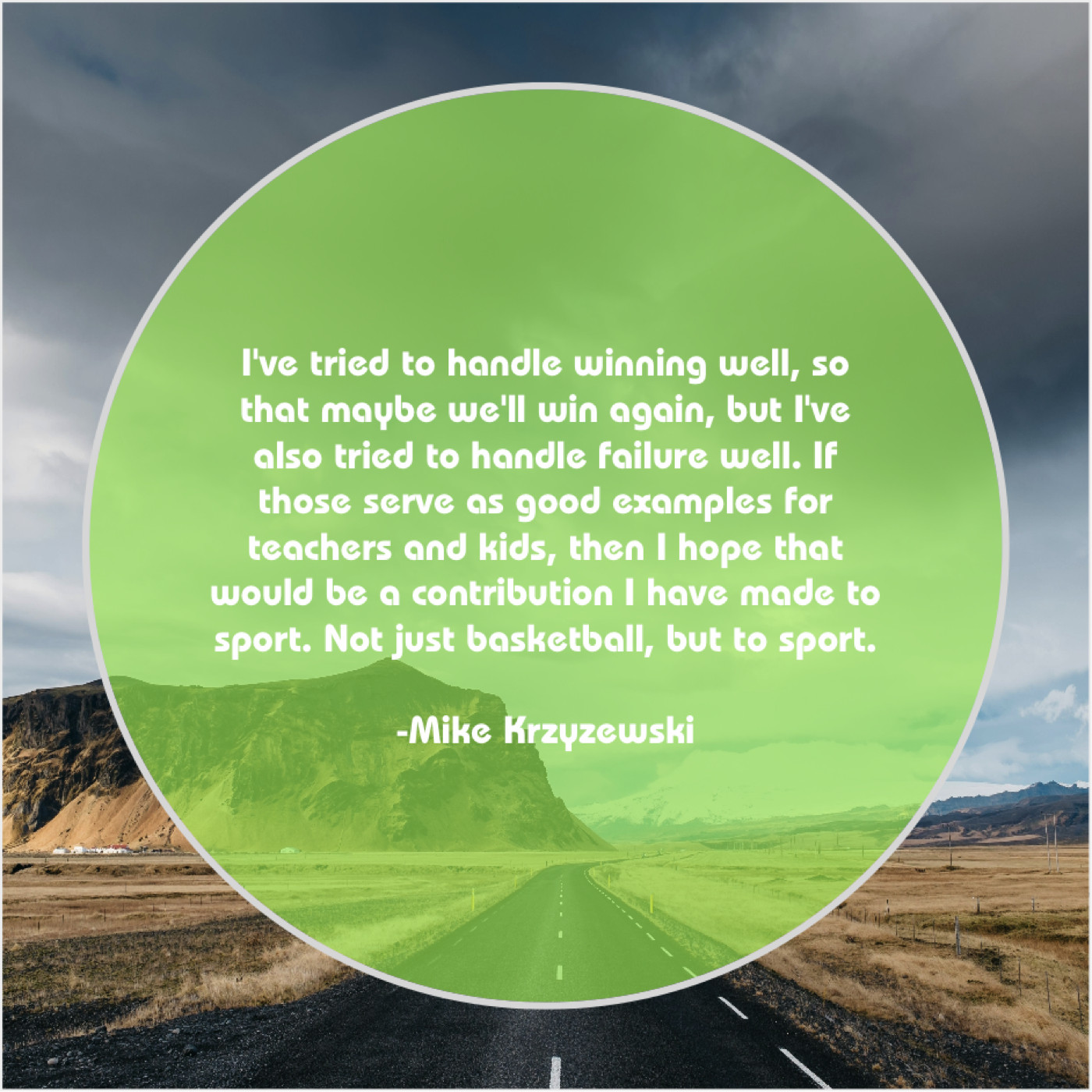 “I’ve tried to handle winning well, so that maybe we’ll win again, but I’ve also tried to handle failure well. If those serve as good examples for teachers and kids, then I hope that would be a contribution I have made to sport. Not just basketball, but to sport.”