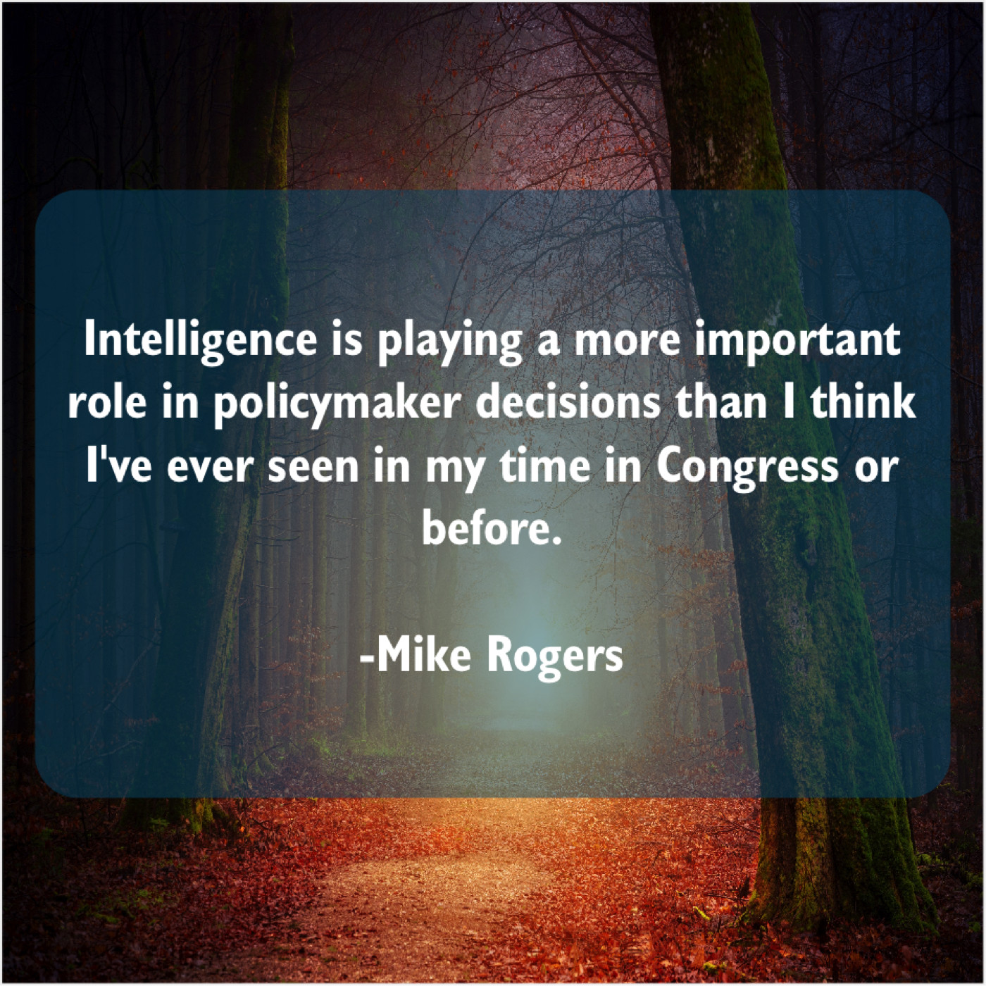 Mike Rogers Mike Rogers – Intelligence is playing a more… February 14, 2019 admin “Intelligence is playing a more important role in policymaker decisions than I think I’ve ever seen in my time in Congress or before.”-Mike Rogers