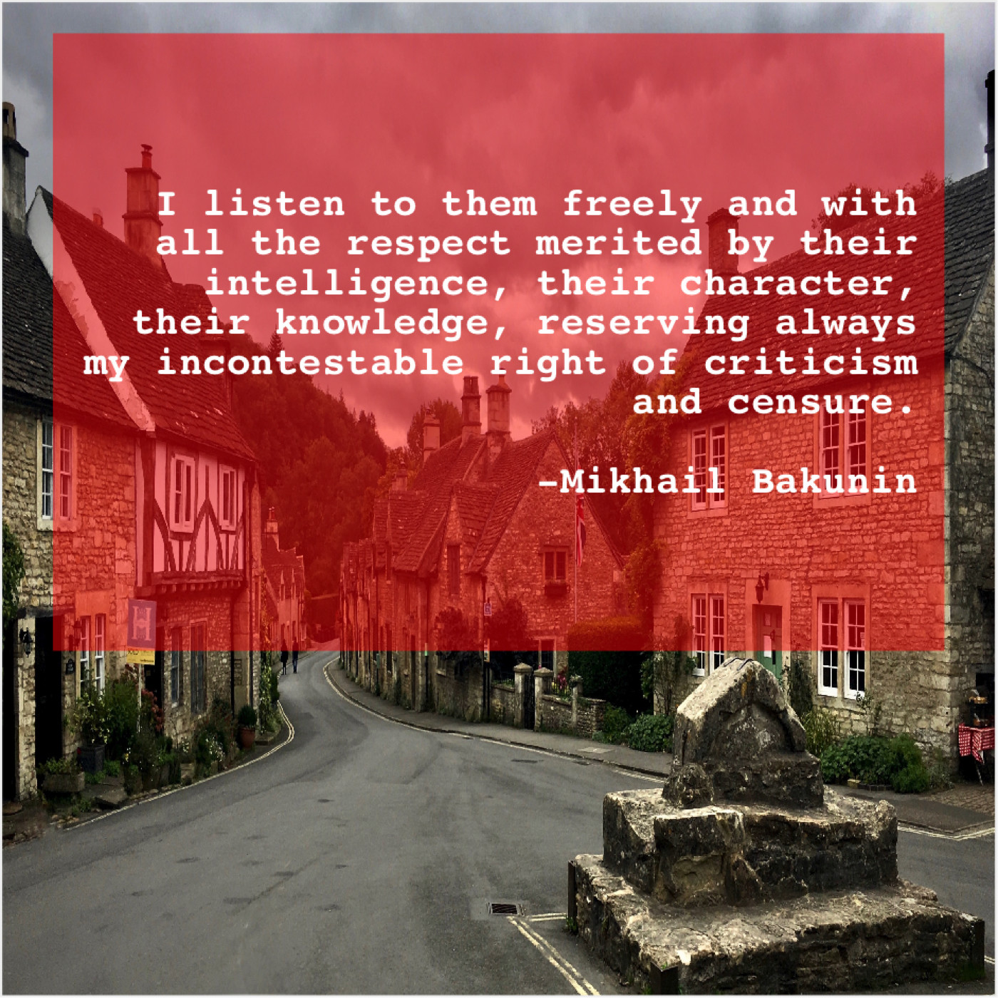 Mikhail Bakunin Mikhail Bakunin – I listen to them freely… November 25, 2018 admin “I listen to them freely and with all the respect merited by their intelligence, their character, their knowledge, reserving always my incontestable right of criticism and censure.”-Mikhail Bakunin