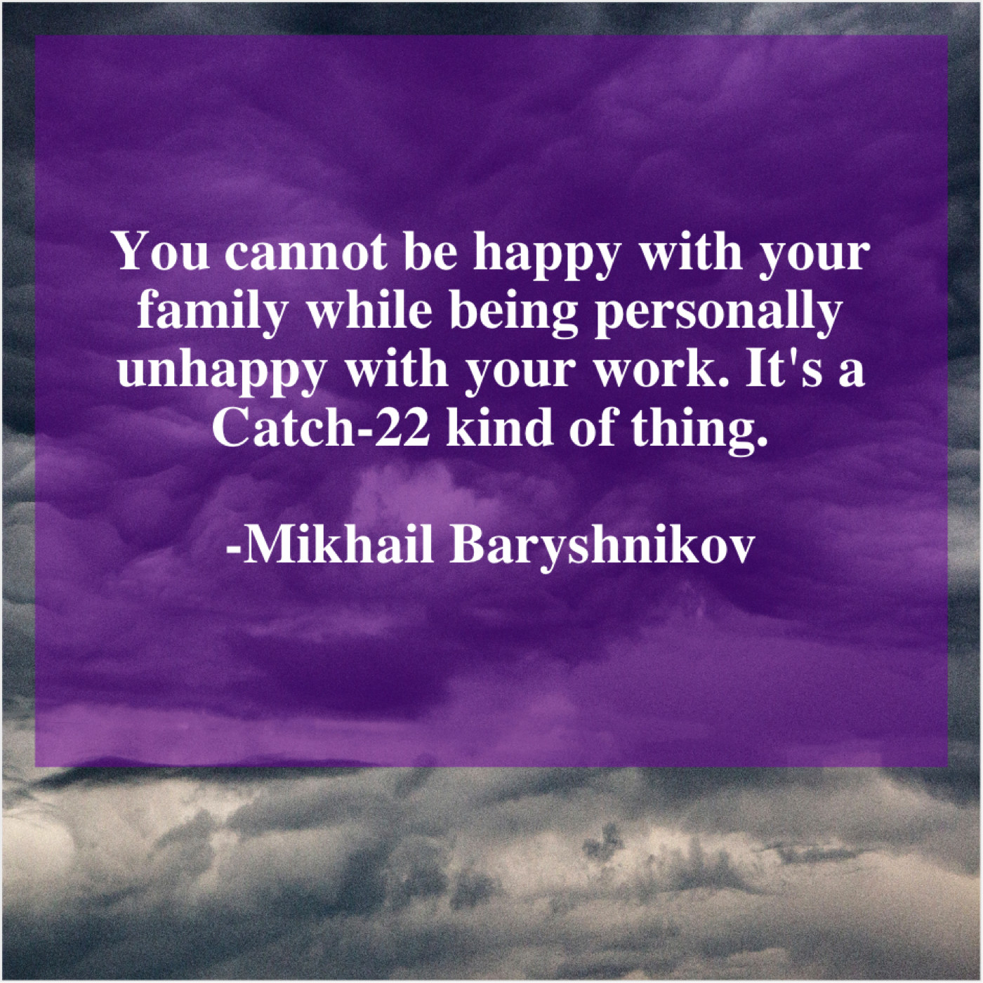 Mikhail Baryshnikov Mikhail Baryshnikov – You cannot be happy with… November 9, 2018 admin “You cannot be happy with your family while being personally unhappy with your work. It’s a Catch-22 kind of thing.”-Mikhail Baryshnikov