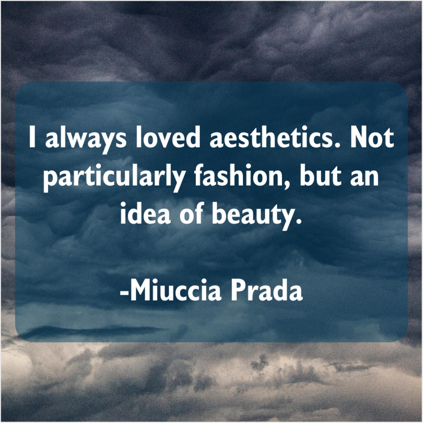 Miuccia Prada Miuccia Prada – I always loved aesthetics. Not… September 4, 2019 admin “I always loved aesthetics. Not particularly fashion, but an idea of beauty.”-Miuccia Prada